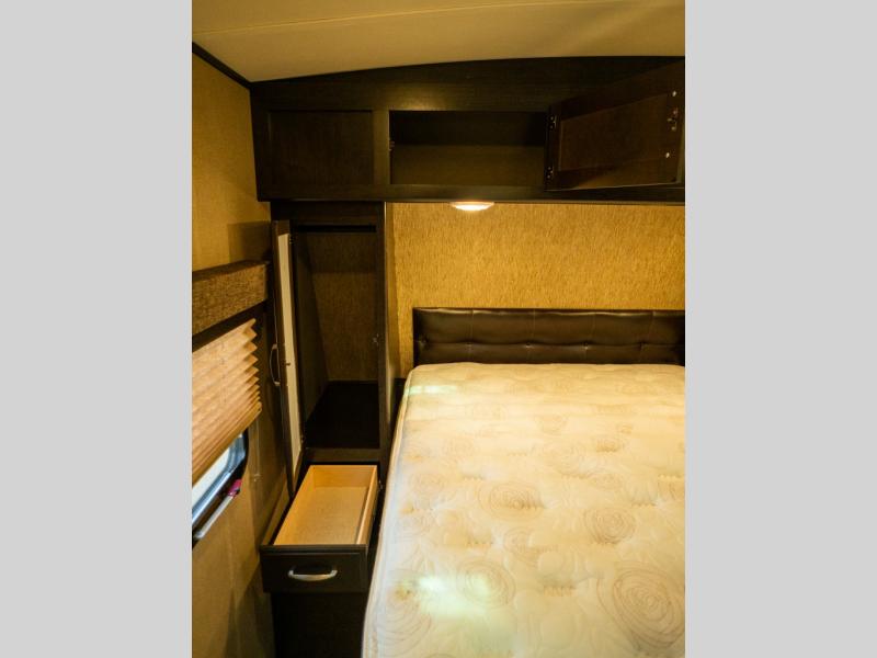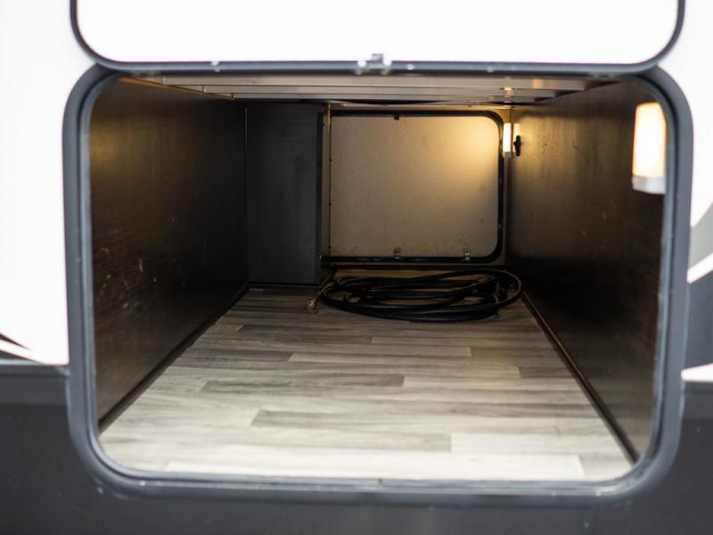 On the outside of this unit you will find plenty of storage for all of your outdoor gear in the drop frame pass-through compartment so you can keep things tucked away when not in use.