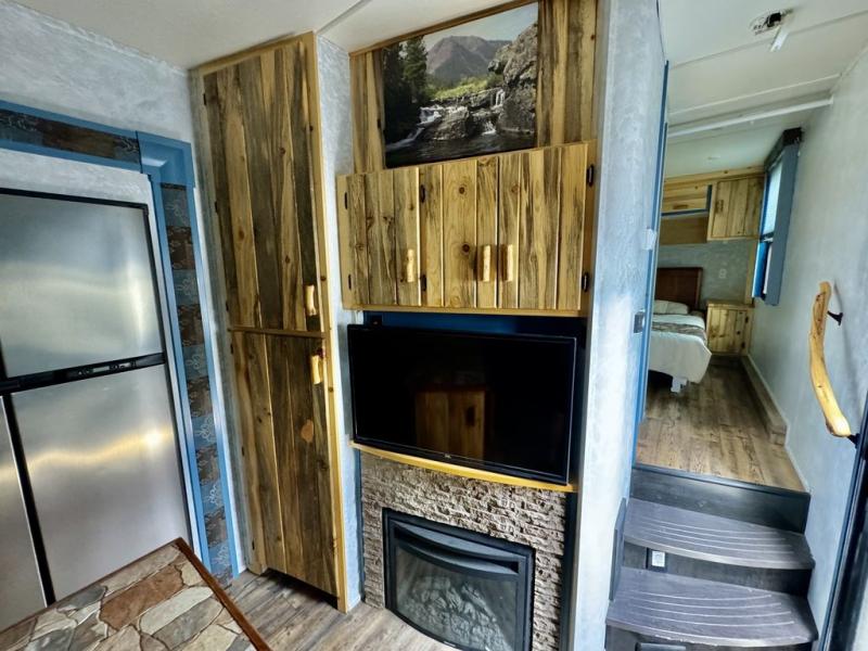 When you aren't playing hard you will enjoy hanging out inside this M-class unit for a little down time. Inside enjoy a spacious sofa slide with stowable table that is perfect for enjoying your meals at. There is also a nearby entertainment center with fireplace.