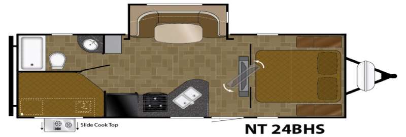 Let this North Trail travel trailer by Heartland RV take you and your seven family members on all of your camping vacations! Model 24BHS features a set of double size bunk beds and a u-shaped dinette that allow sleeping for 6, a front bedroom with a queen size bed, plus an exterior kitchen for the outdoor cook in the family.