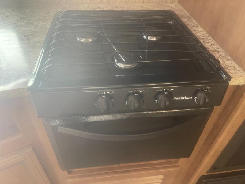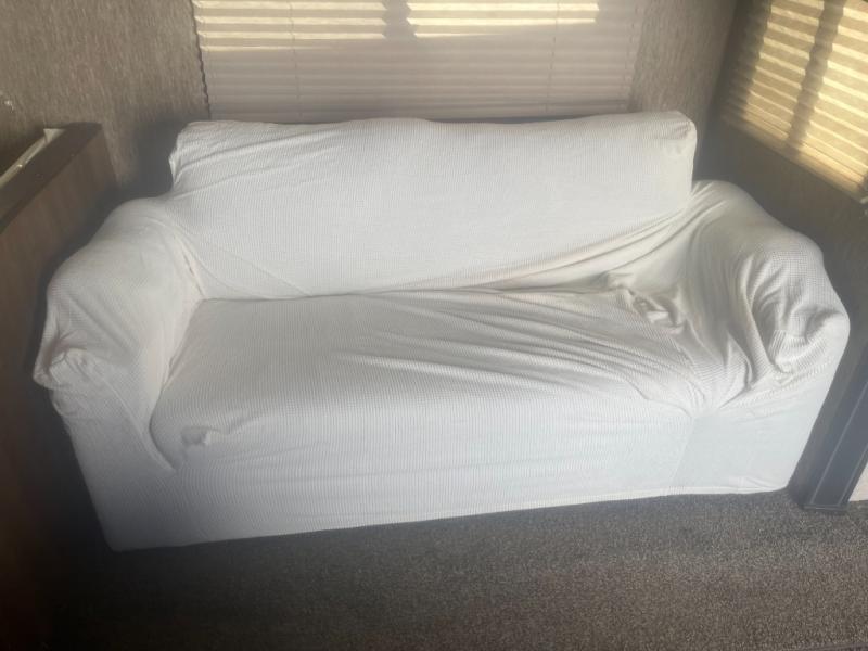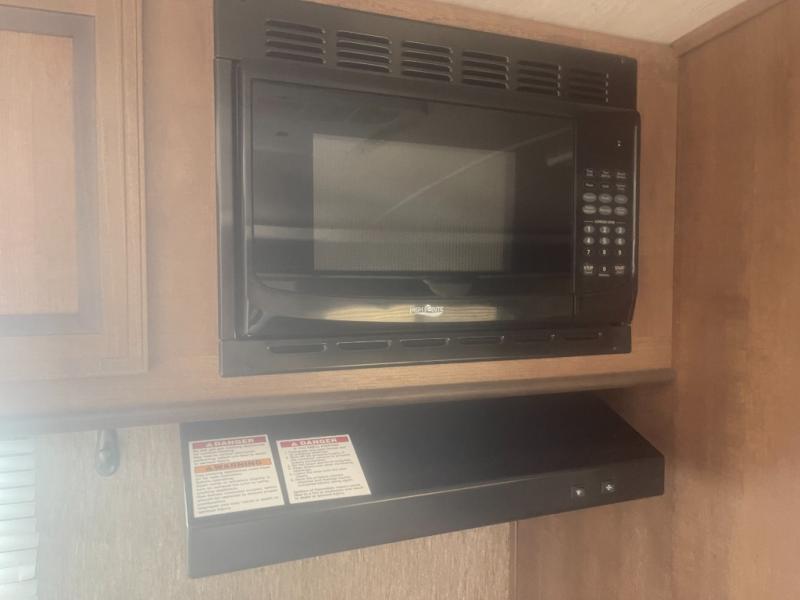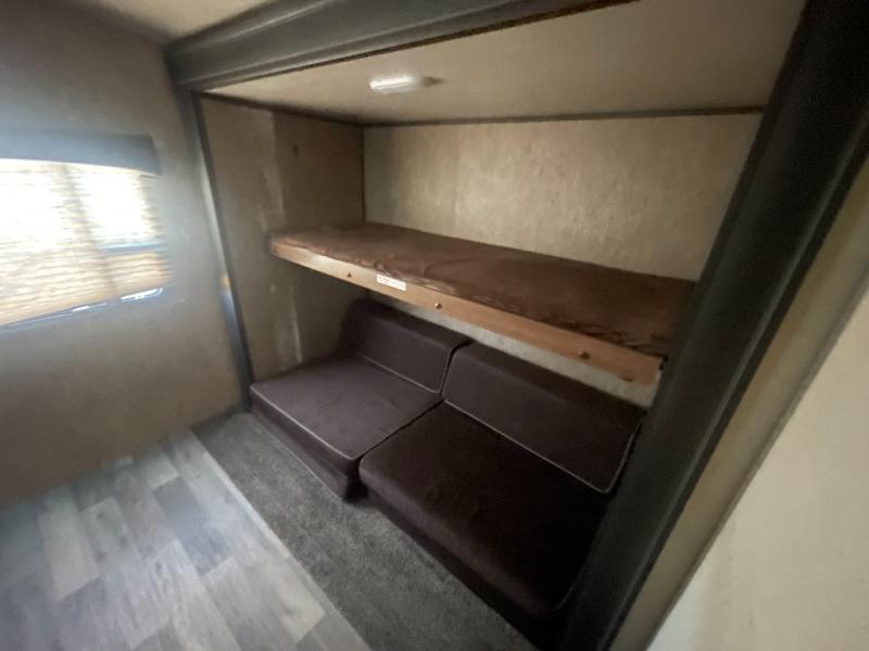 Your kids will love their own space in the rear bunk house! There is a slide with a folding futon and a flip up bunk above. On the opposite side you will find an entertainment center with a bunk above.