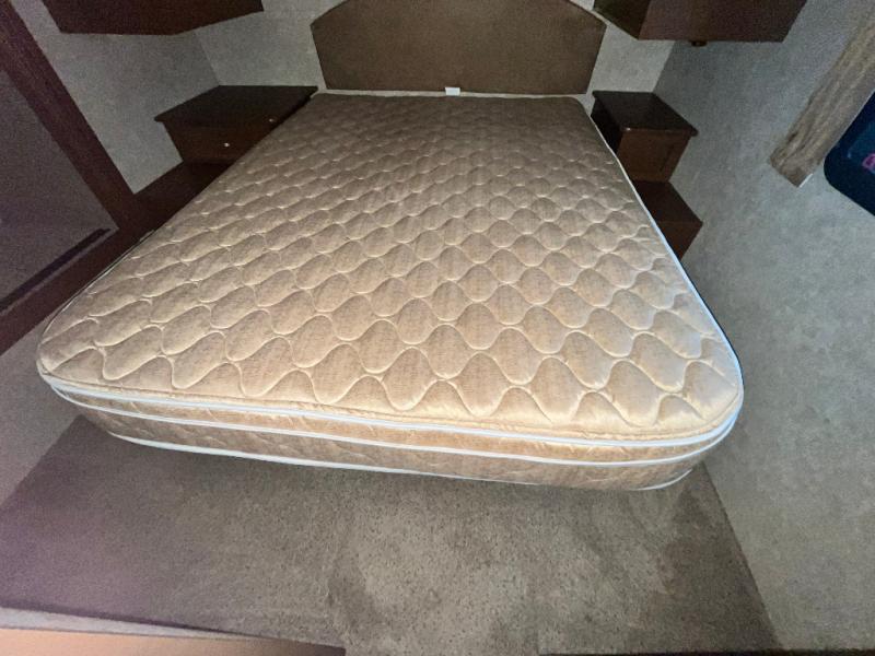 The front bedroom features a slide out mirrored door wardrobe, plus a queen bed with nightstands and overhead storage.