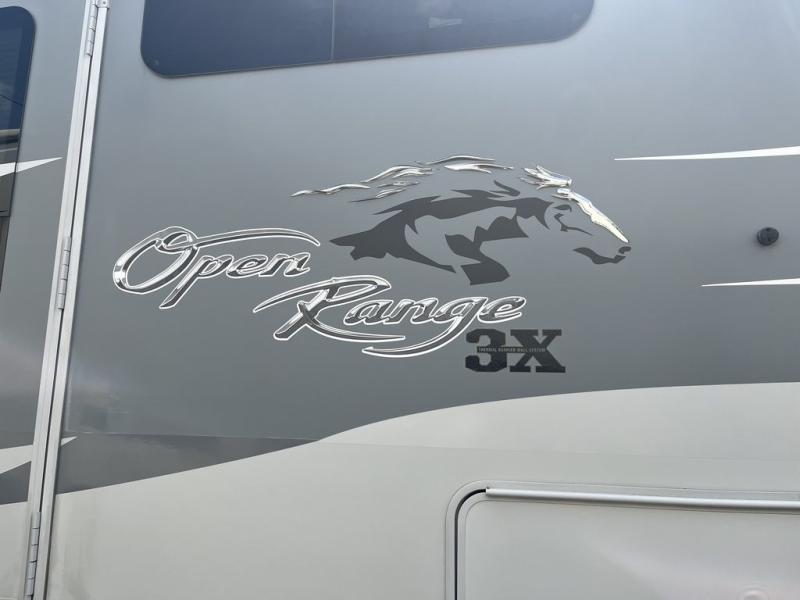 It's time to load up in this Open Range 3X 388RKS fifth wheel featuring a unique rear kitchen layout, triple slides for added interior space for moving around, and a king size bed for comfort, plus more!