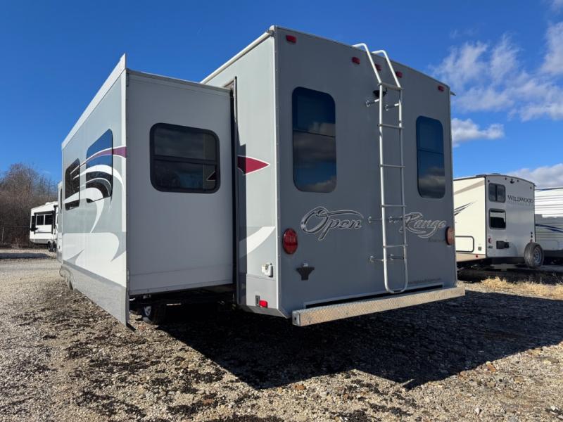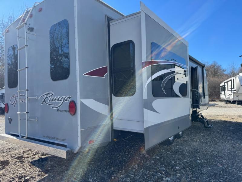 You will love the living space in this Open Range Roamer travel trailer model RT320RES by Highland Ridge RV. With a rear entertainment center and dual opposing slides you will enjoy time spent with family in this spacious triple slide unit.