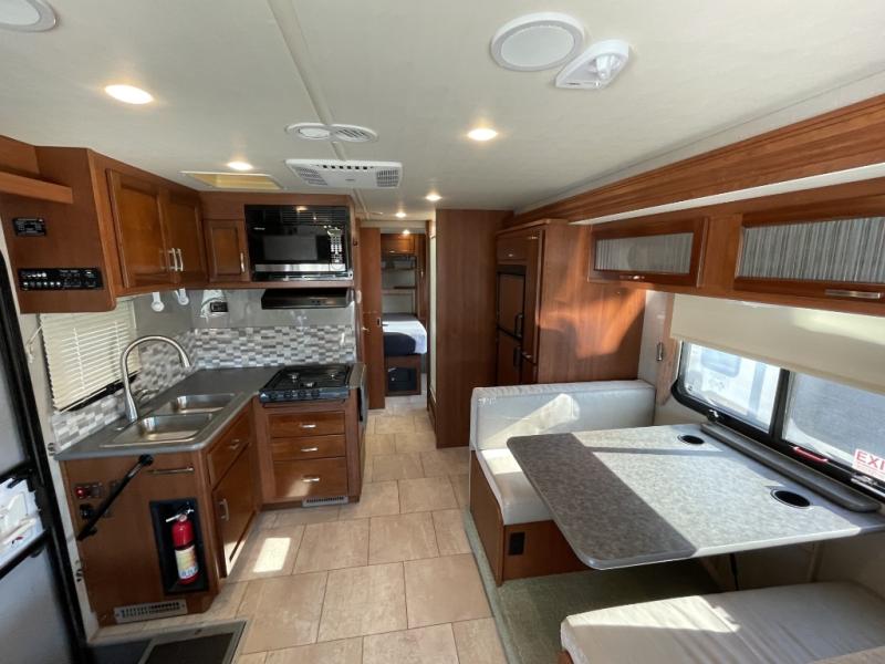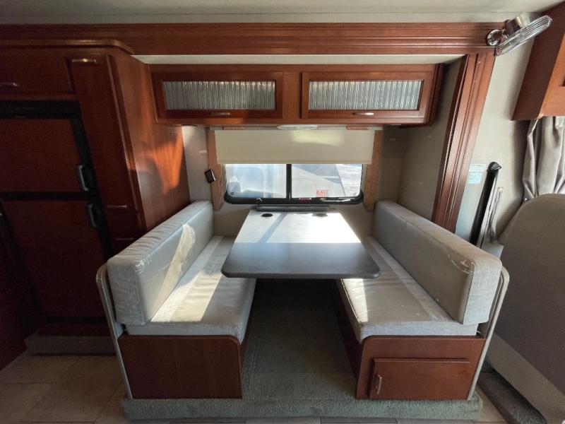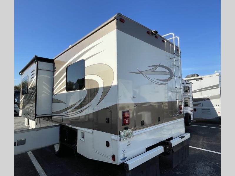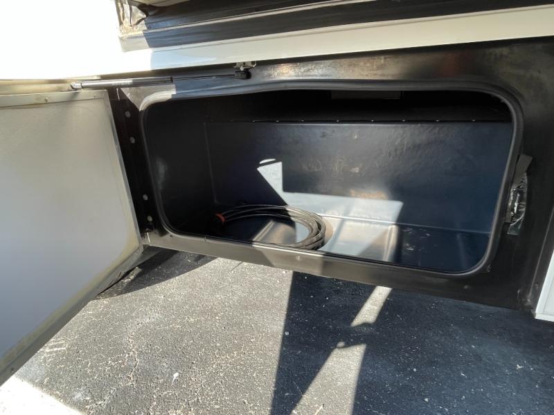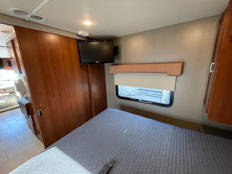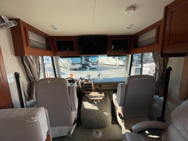 Above the cab area you will find a 32" LED TV for enjoyment, and storage along either front seat up above.