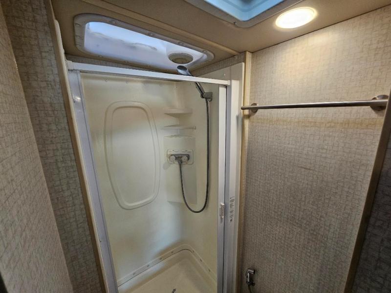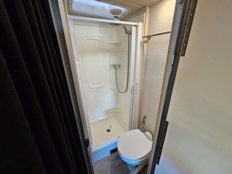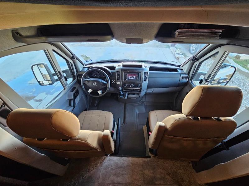 Step inside just behind the front passenger seat. Notice how both driver and passenger seat can swivel around creating additional seating space once parked. There is overhead storage on both sides of the cab area, or you can opt. for a cabover bunk that is 49" x 75", which easily makes room for one additional guest to sleep.