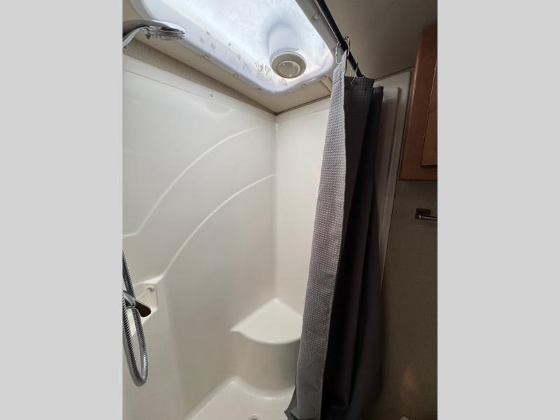 The complete bath is also centrally located and provides a shower, toilet, and vanity with sink, plus overhead storage.