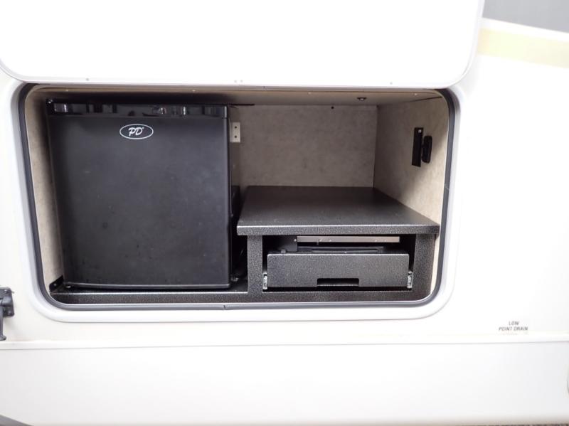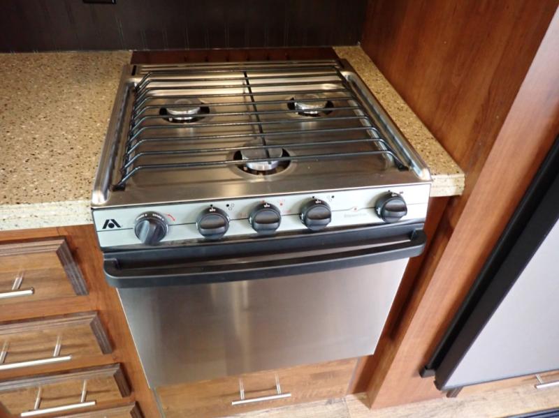 Outside there is a kitchen with a refrigerator and two burner range. You will also find plenty of exterior storage as well as an optional second awning.