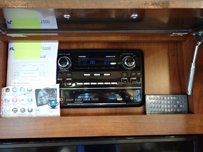 Along the rear wall you can sit and relax on the tri-fold sofa, at night the sofa easily converts into additional sleeping space. Above the sofa there is an overhead cabinet.