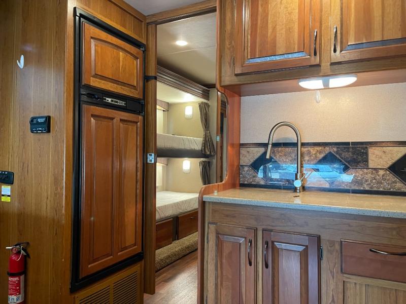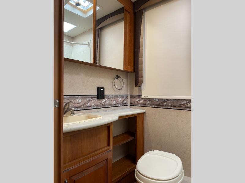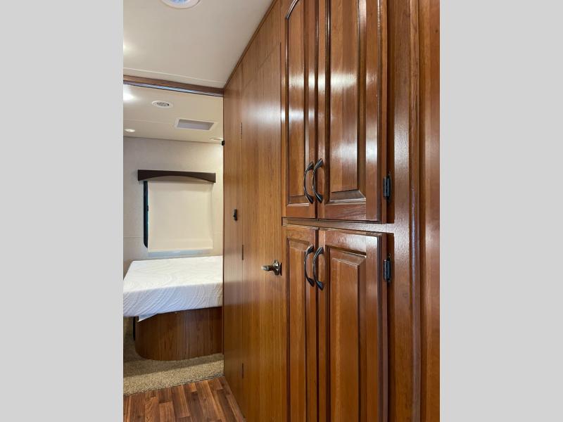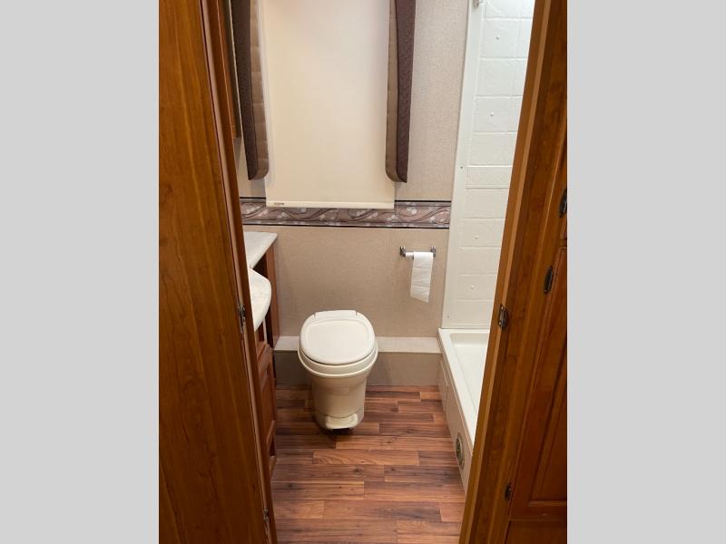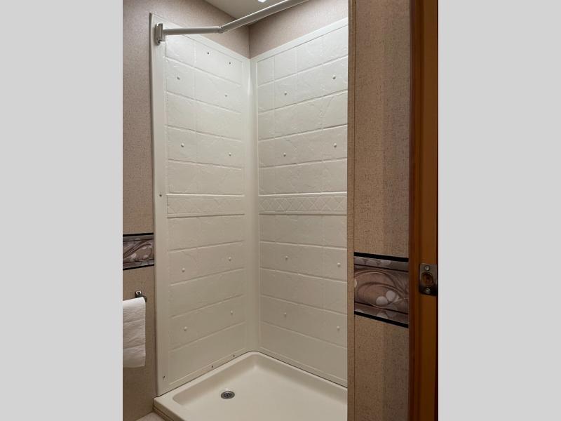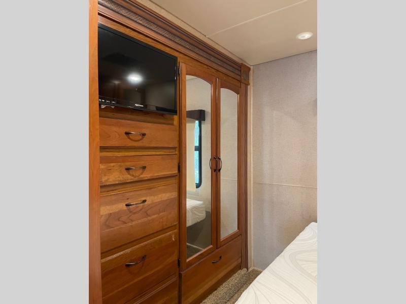 You can choose as an option, an entertainment center over the cab. You can bring all of the necessary items from home and store them in the overhead cabinets or in all of the exterior storage areas. Outside you will also enjoy the 10' awning and the shade that it provides, plus so much more!