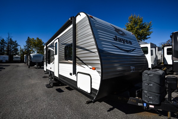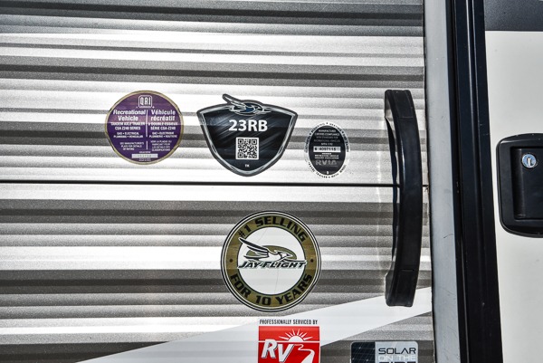 This model features a rear bathroom, and a front bedroom. With the Jay Flight 23RB travel trailer by Jayco, you can go anywhere with your travels!