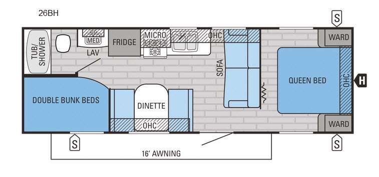 With a rear bunk house that has double bunk beds your kids can easily bring along a few friends in the Jay Flight 26BH travel trailer by Jayco.