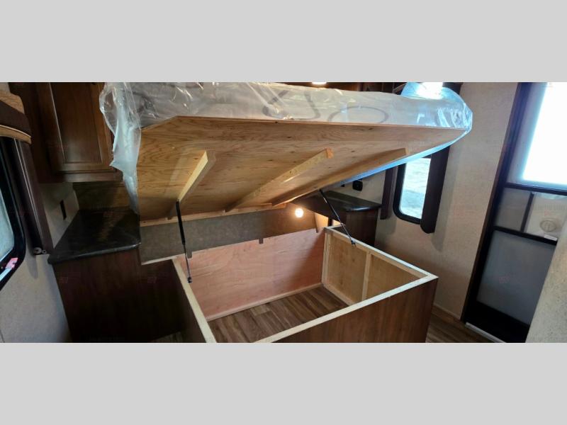 Overhead storage can be found throughout the travel trailer as well as exterior storage for all of your camping gear, plus more!
