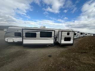 There is so much space inside the 32TSBH Jay Flight travel trailer by Jayco! Since this trailer has a rear bunk house your kids can bring along a friend, or your guests can have their own space.