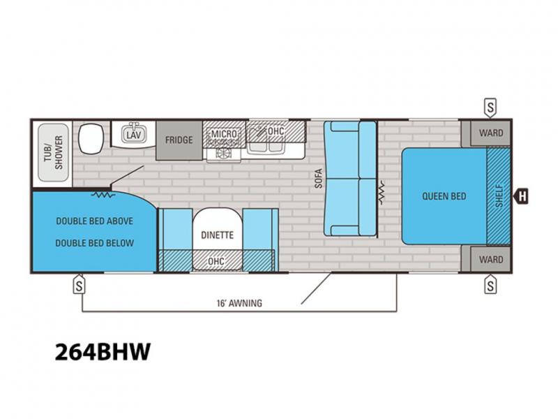 The Jay Flight SLX 264BHW travel trailer by Jayco is perfect for a weekend get-a-way. With rear double bunk beds you can easily bring along a few guests!