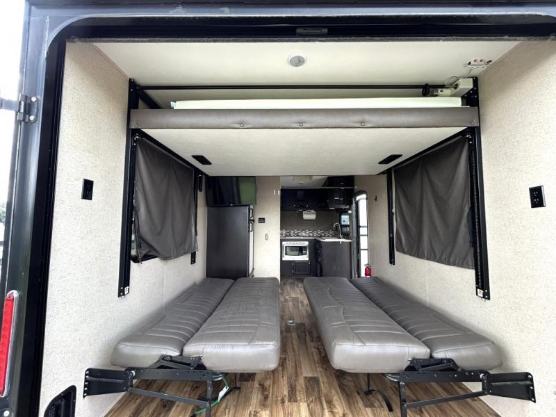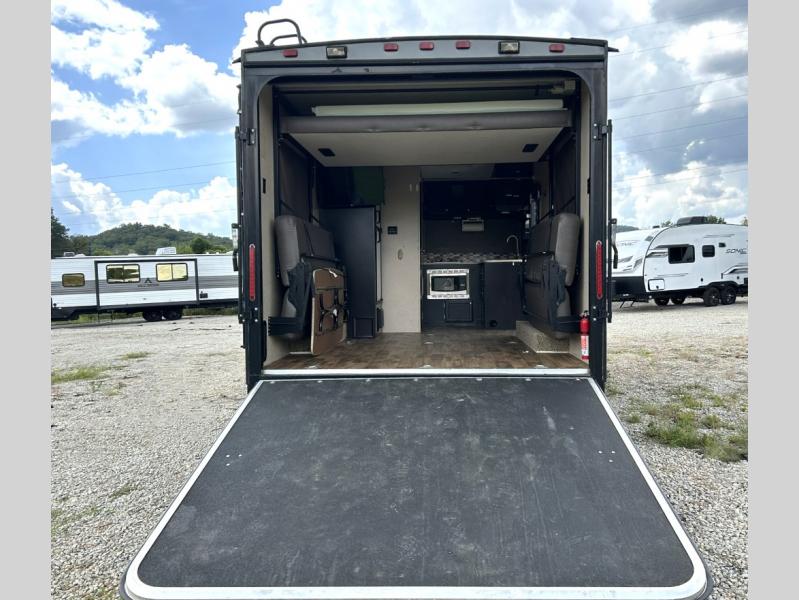 Toy Hauler, Queen Bed, 7' Rear Ramp door, Front Corner Bath, 2 Fold Away Sofas - Campers Inn RV of South Louisville 502-955-7484