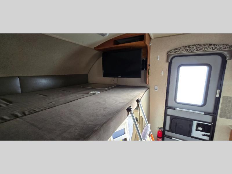 In the front of the motor home, you will also find a cab over bunk and an overhead TV.