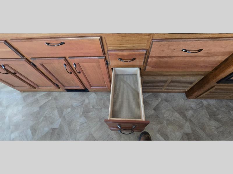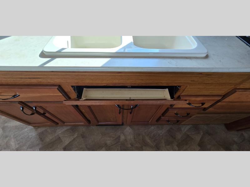 There are plenty of overhead cabinets throughout the motor home as well as exterior storage. You are also sure to enjoy the 16' awning and the shade it provides from the outside elements, and more!