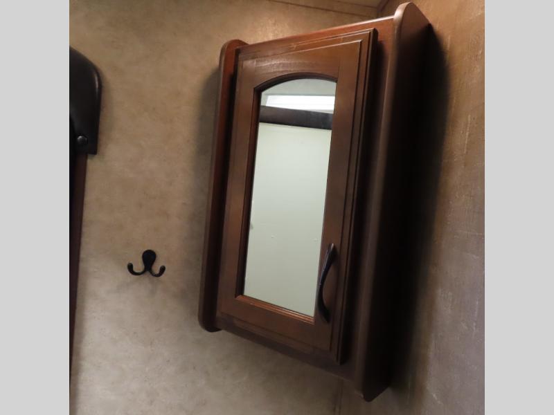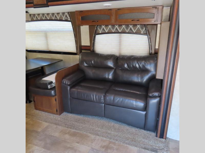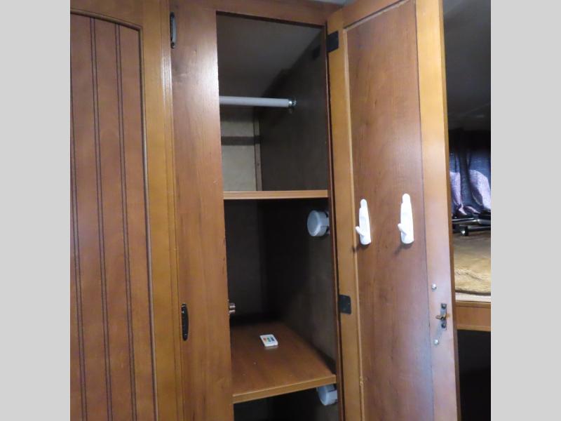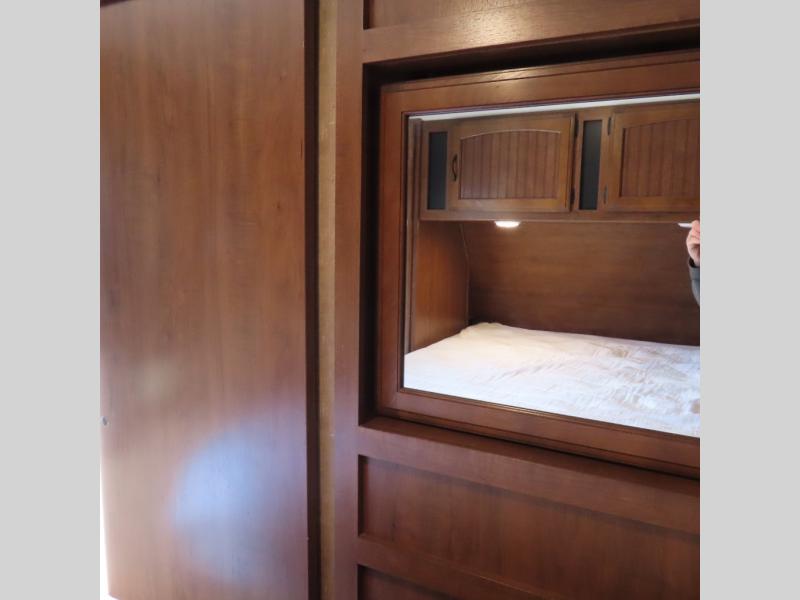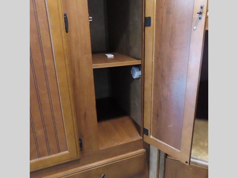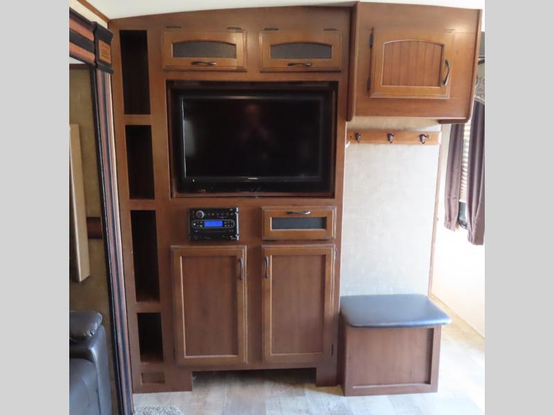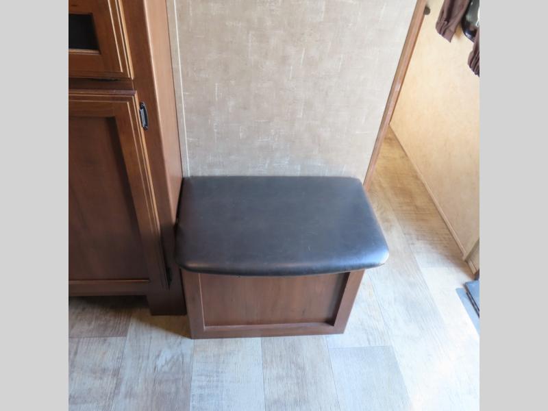 As you enter the front main entrance, there is a bench seat with storage and overhead cabinet. You will enjoy watching TV or movies on the entertainment center which is next to the bench and road side slide.