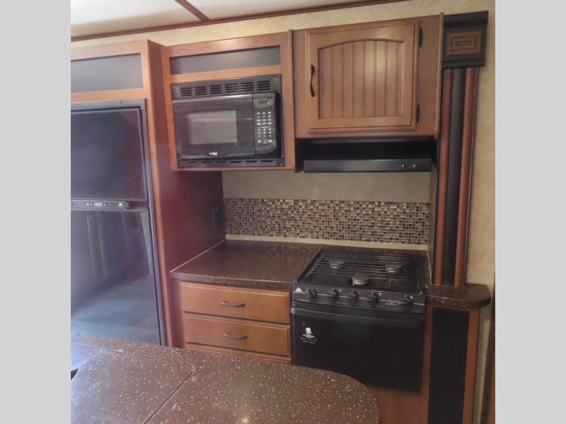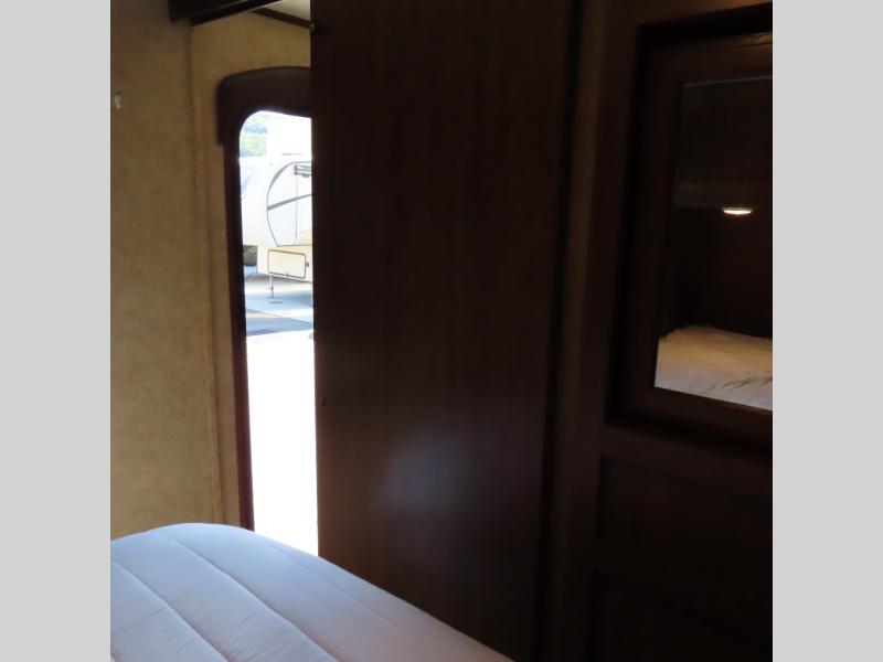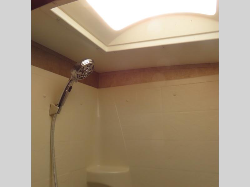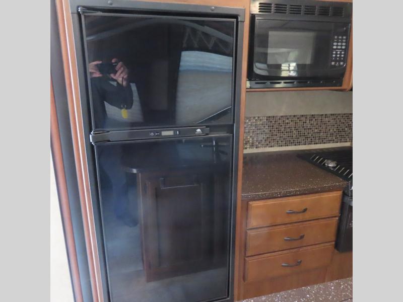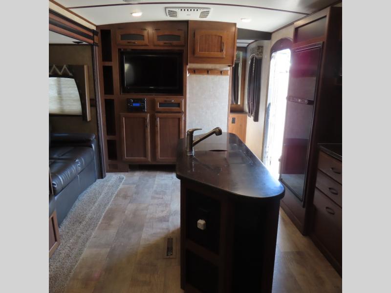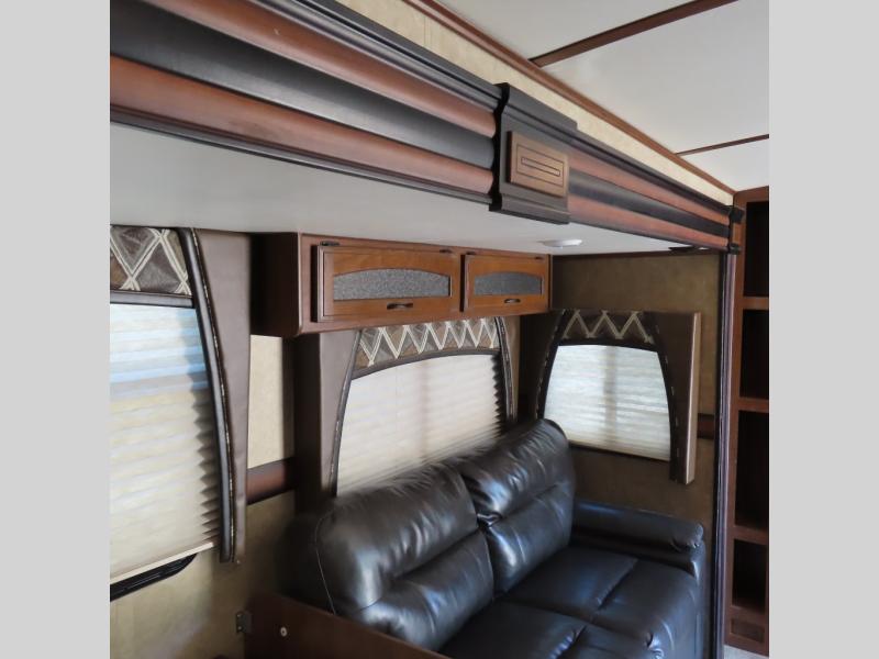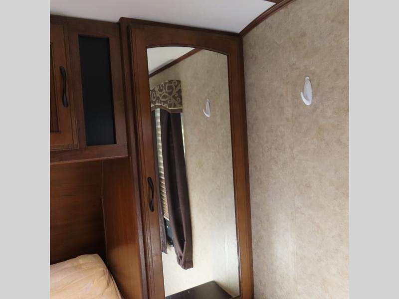 As you enter the front main entrance, there is a bench seat with storage and overhead cabinet. You will enjoy watching TV or movies on the entertainment center which is next to the bench and road side slide.