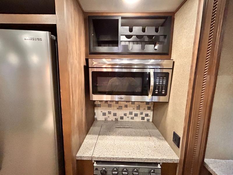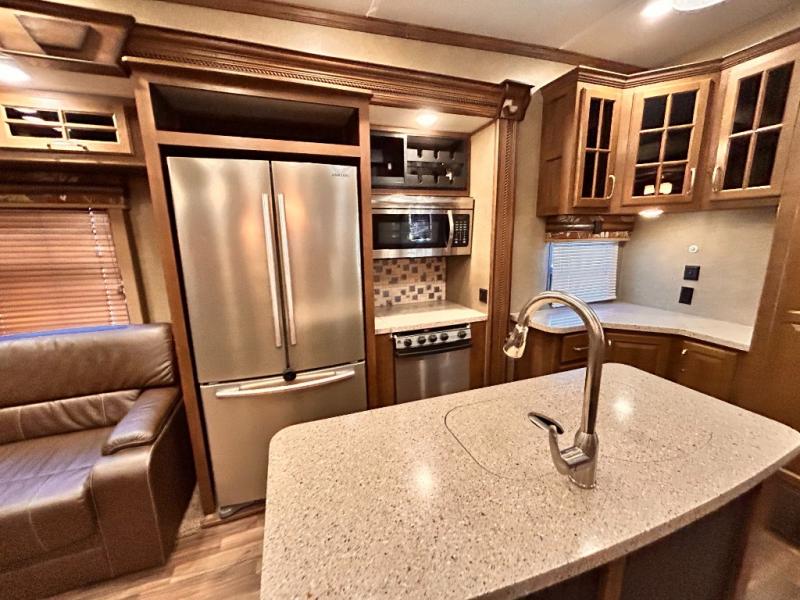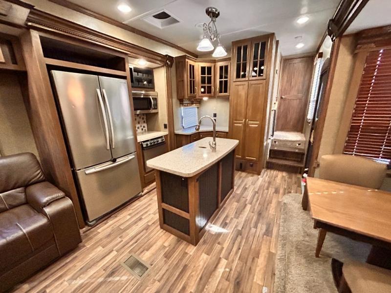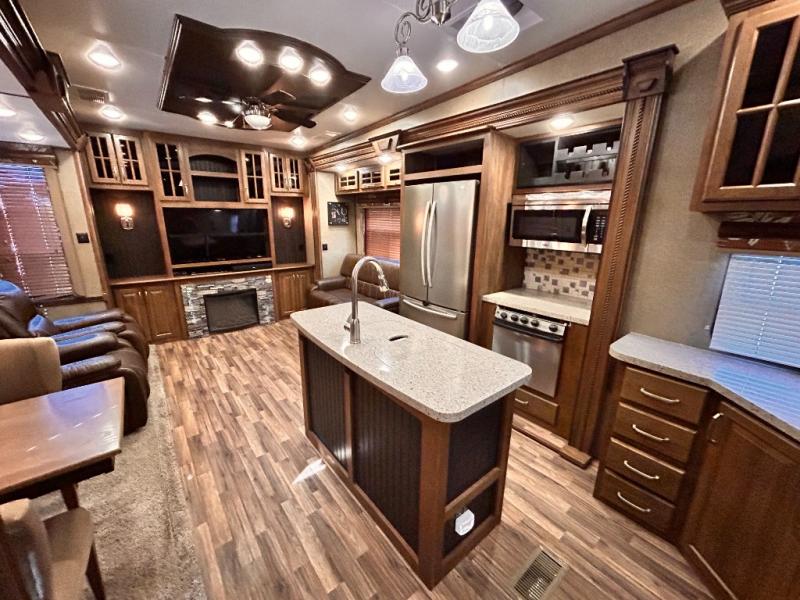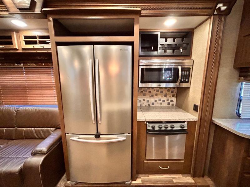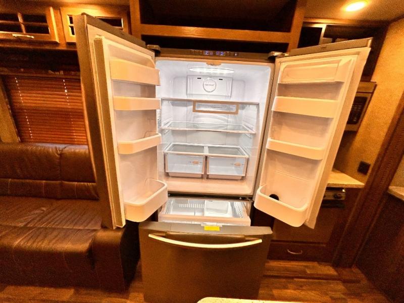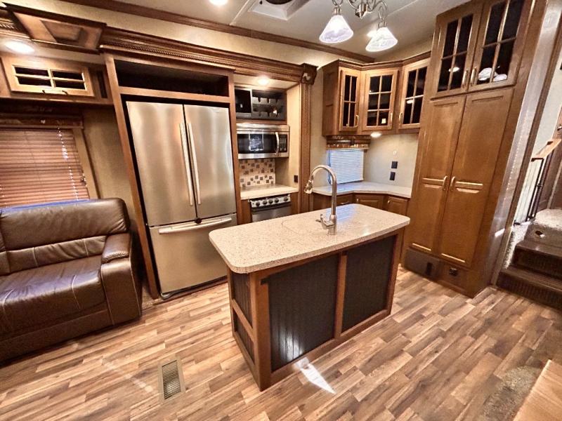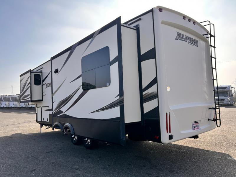 This rear entertainment Keystone Alpine fifth wheel 3011RE is identical to 3010RE in its layout which features triple slides, a king size bed, and a convenient kitchen island. The only difference is that this unit features an 18 cu. ft. residential refrigerator!