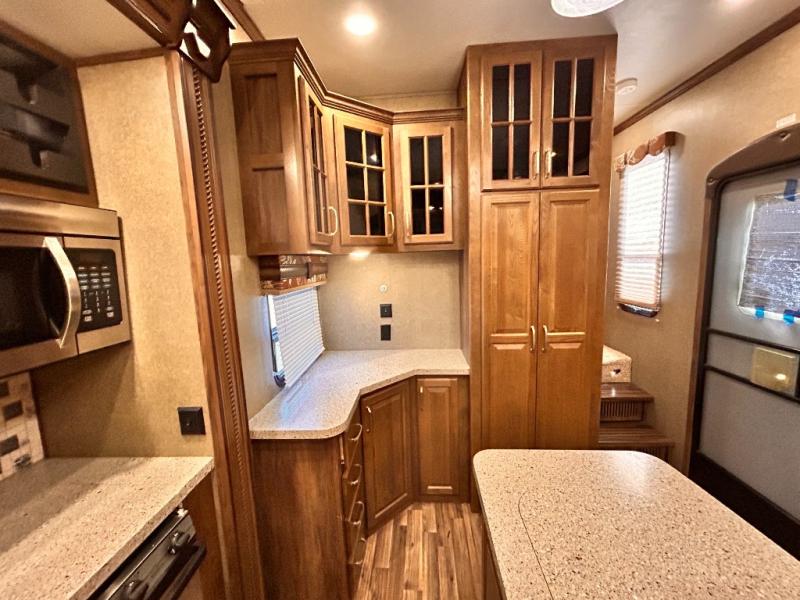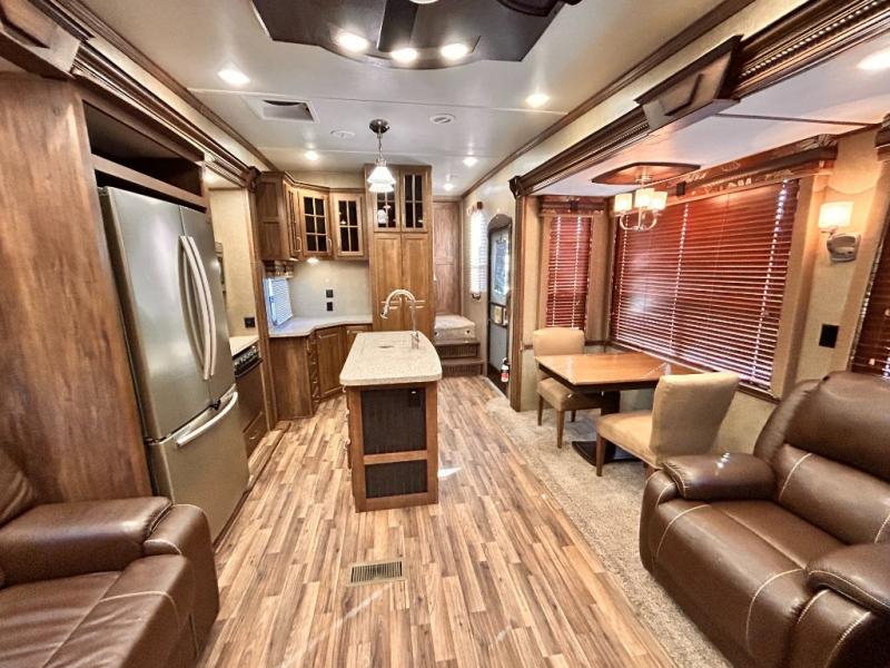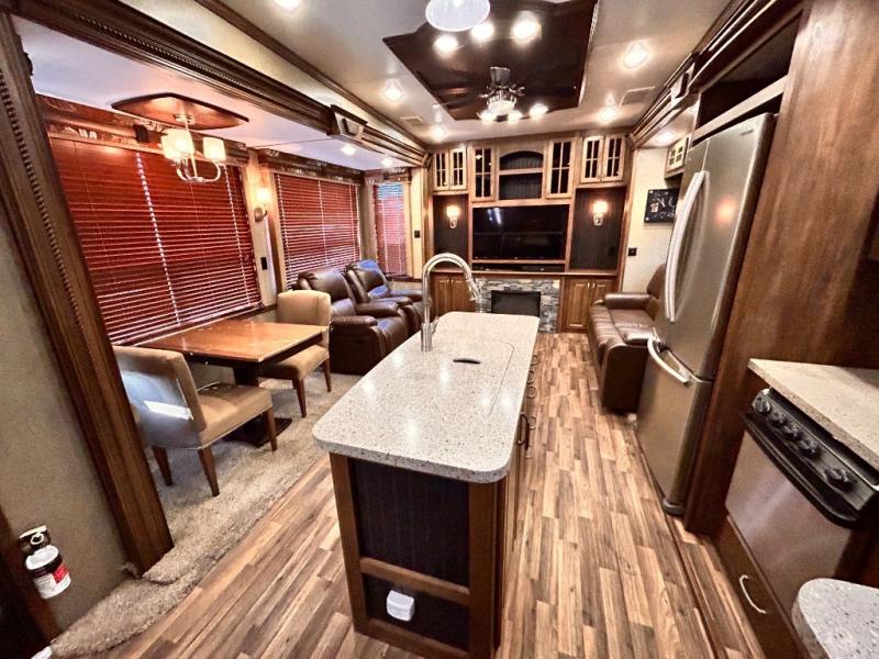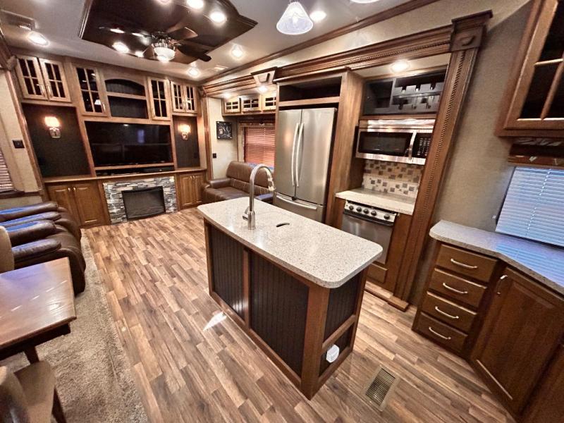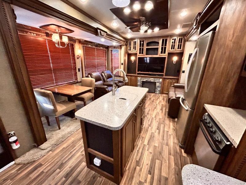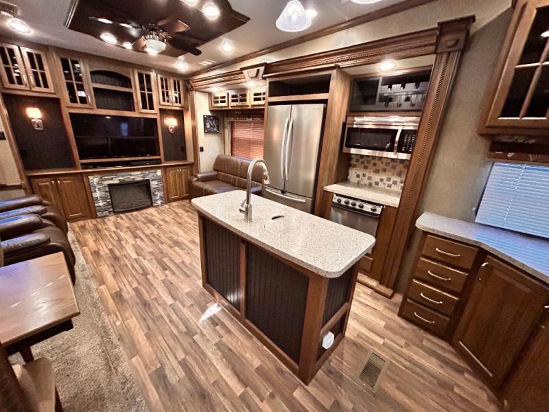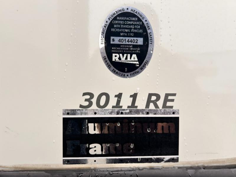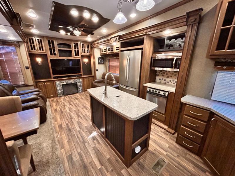 This rear entertainment Keystone Alpine fifth wheel 3011RE is identical to 3010RE in its layout which features triple slides, a king size bed, and a convenient kitchen island. The only difference is that this unit features an 18 cu. ft. residential refrigerator!