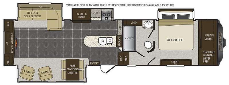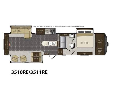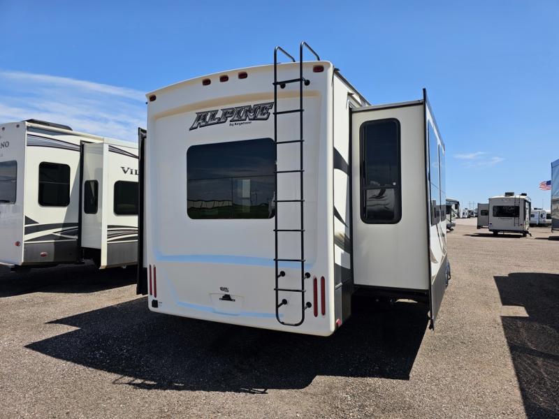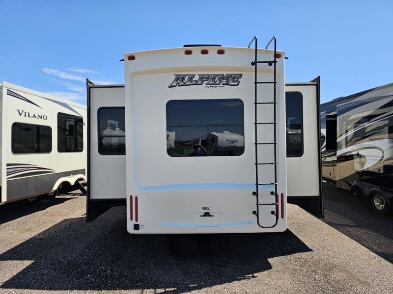 This rear living Alpine fifth wheel is the perfect unit for those who enjoy being able to entertain while camping. Model 3511RE features quadruple slide outs for added interior space, a king size bed, and an 18 cu. ft. refrigerator! Now that's a lot of hors d'oeuvres!