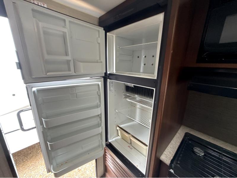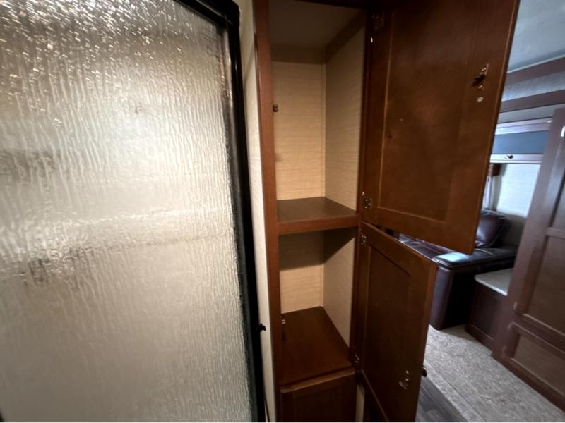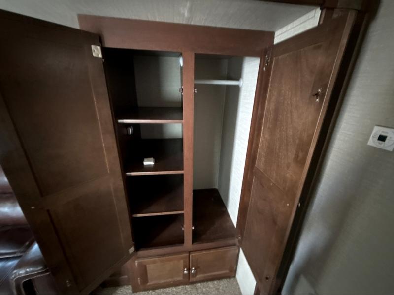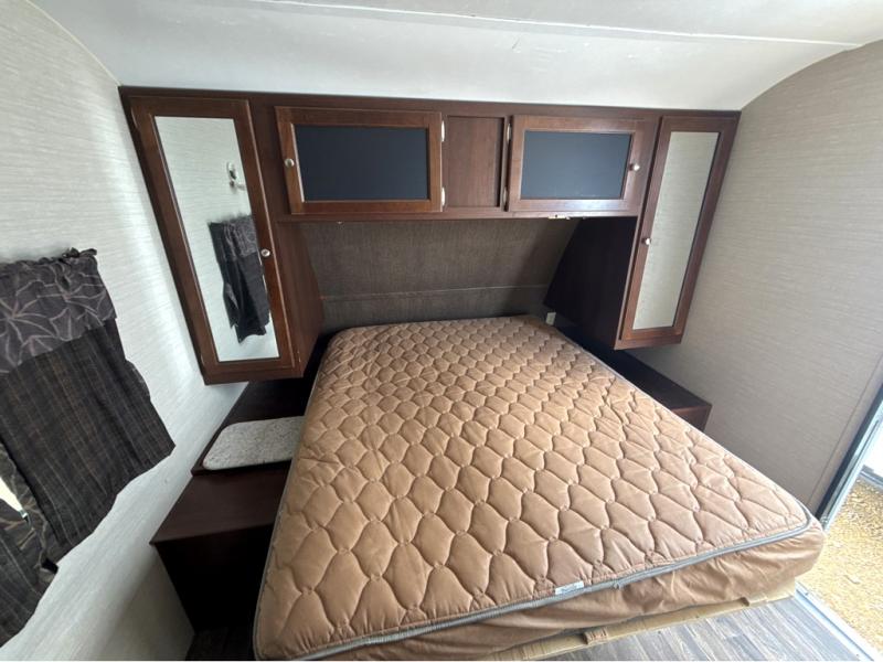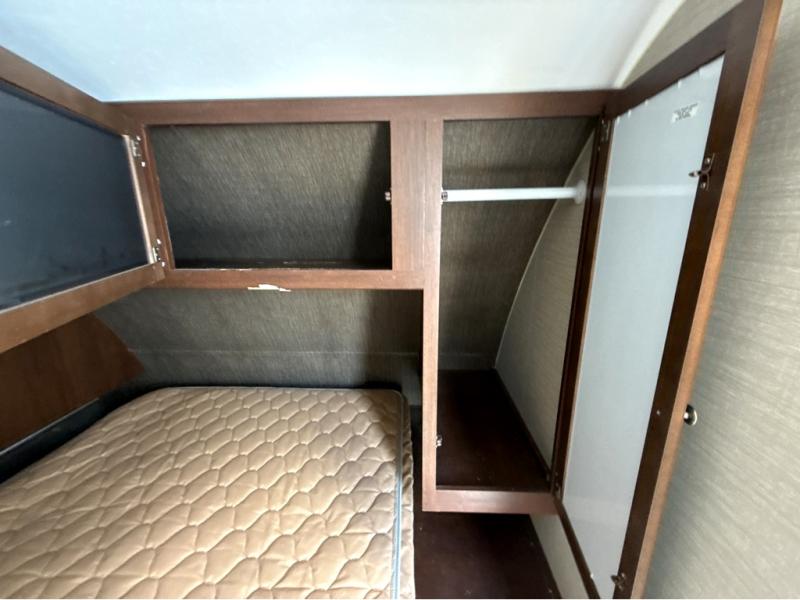 All the way to the front of the Bullet 248RKS is a comfy queen bed with wardrobes on either side of the bed, along with a laundry chute and an overhead cabinet for more storage. There is also a private bedroom entry/exit door for your convenience.