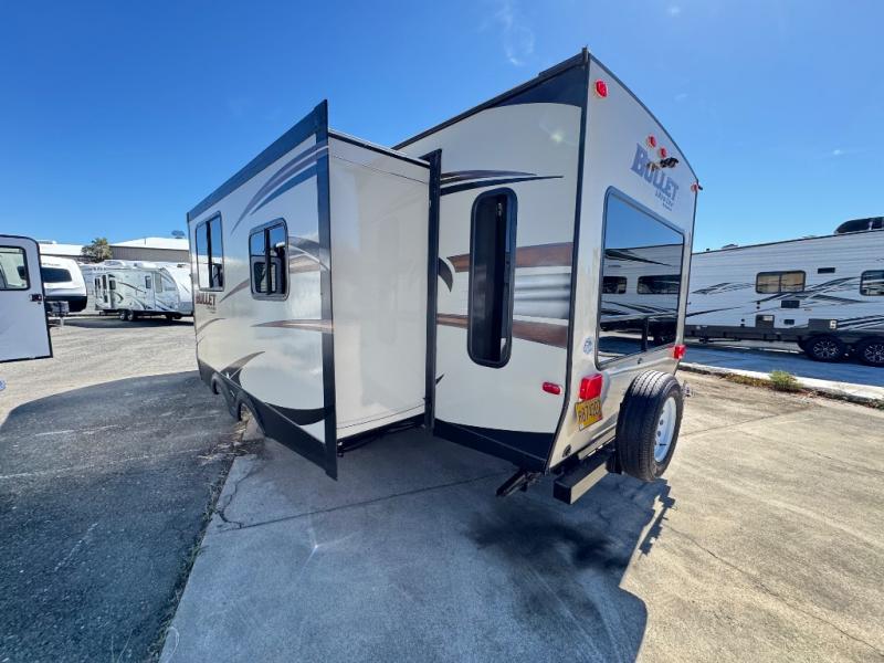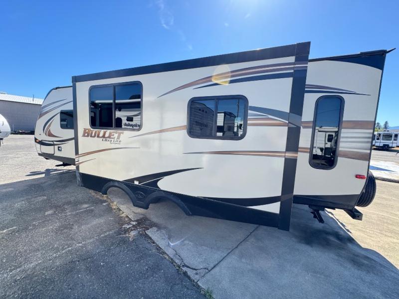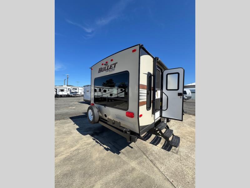 This rear living Bullet travel trailer by Keystone RV features two separate entry doors for convenience, and a single slide for added interior space, plus more!