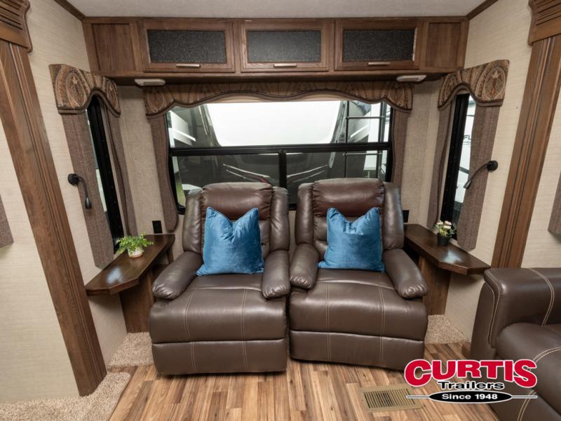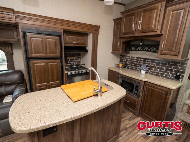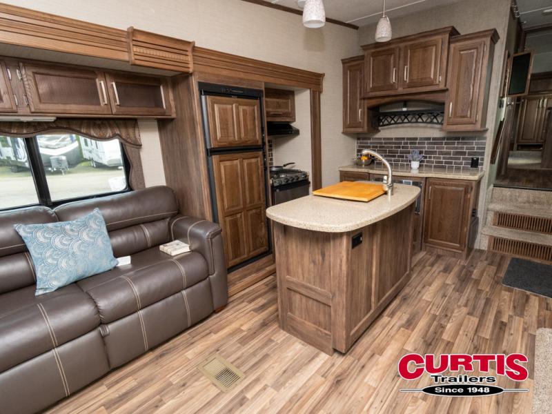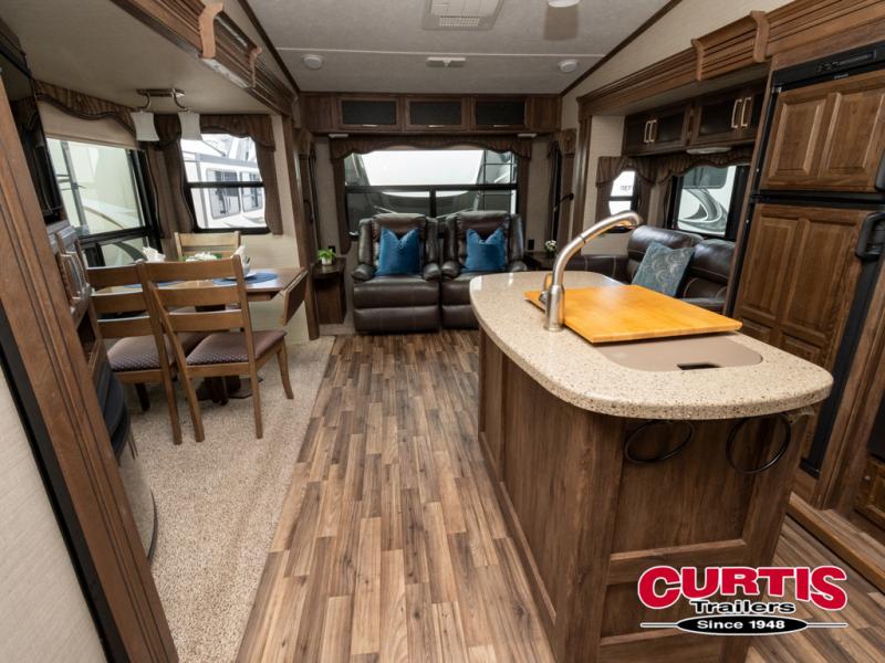Step inside this rear living Cougar fifth wheel 313RLI by Keystone featuring triple slides and a convenient kitchen island.