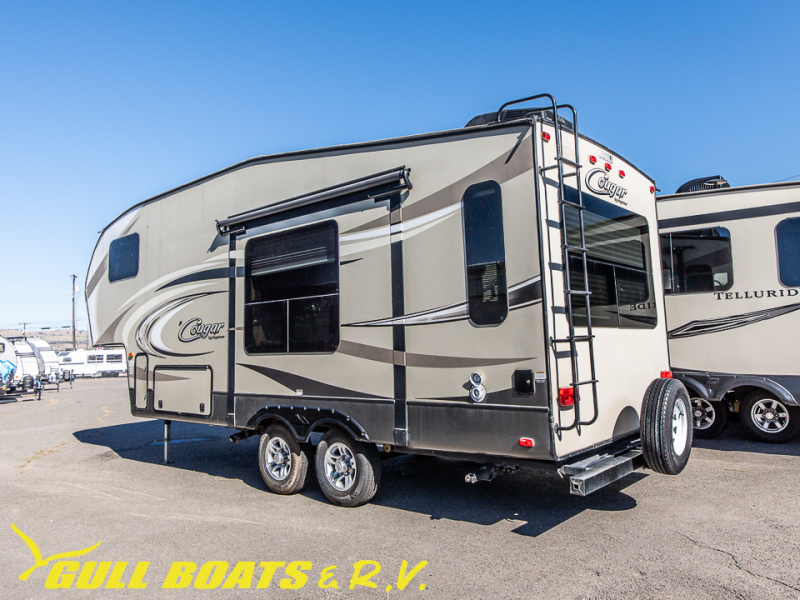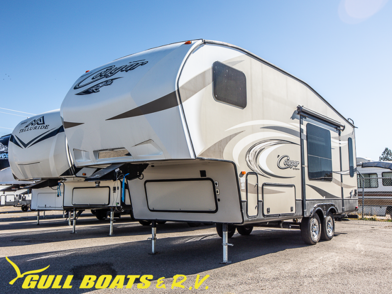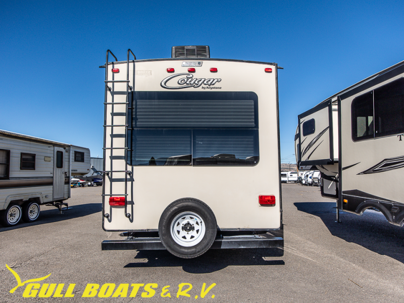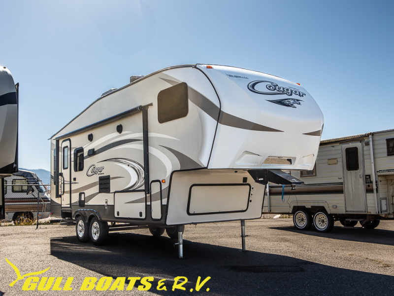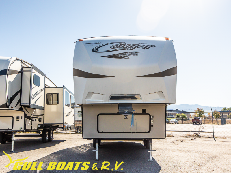 This Cougar Half-Ton series fifth wheel model features a rear living area with your choice of seating options, and a single slide for added space inside.