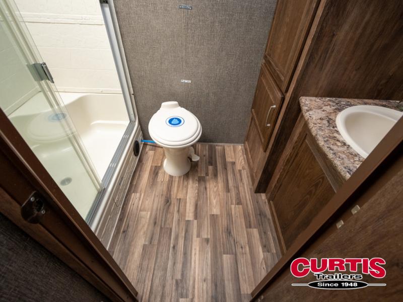 Step inside model 26RBIWE and enjoy the wide open concept feel with opposing slides fully extended. There is a front bedroom with queen bed including dual wardrobes, headboard storage, and a laundry chute for your dirty clothes.