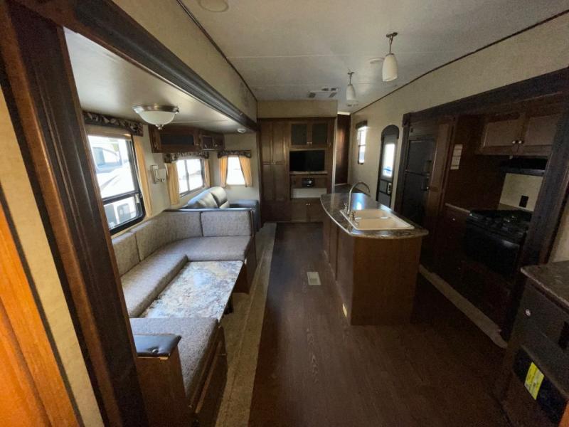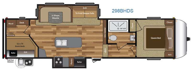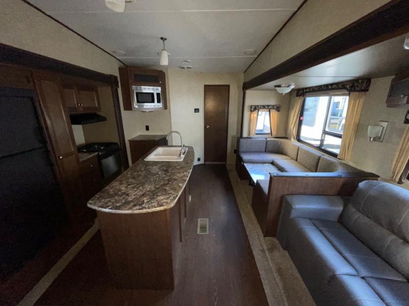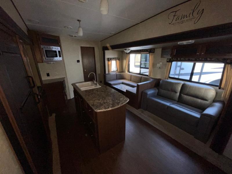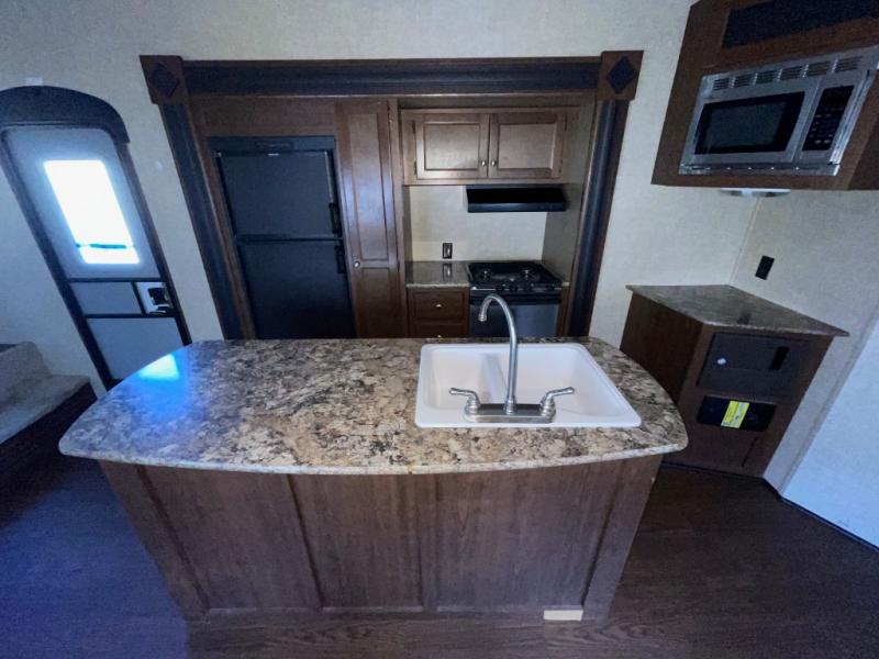 This Keystone Hideout fifth wheel 298BHDS has the space you need and want when traveling with a larger family, or if you enjoy traveling with extra guests.