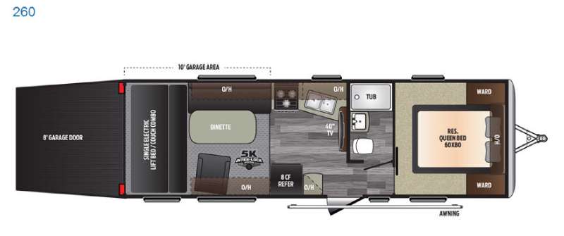 UNDER NADA PRICINGThis Impact toy hauler travel trailer by Keystone RV will definitely make it easy to enjoy your outdoor adventures. Model 260 features a 10' cargo area for hauling the toys you enjoy, and provides all the comforts you need when you want to take a break inside!