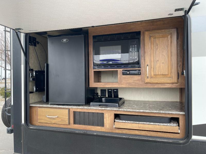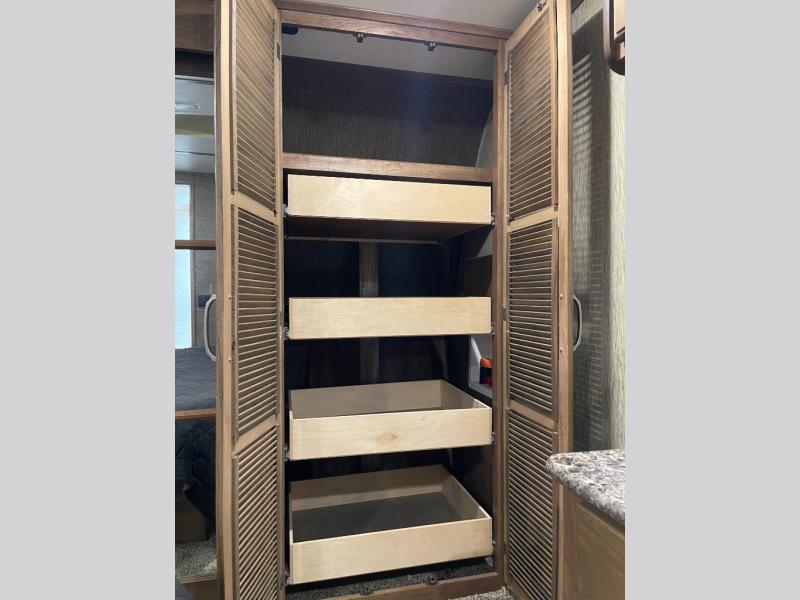 You will also enjoy the outside storage near the front with a pass-through compartment making it easy to stow away all of your outdoor camping gear, and so much more!