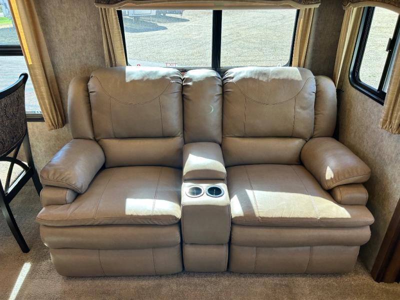 Enter model 3721RL and find a wide open concept living space with dual opposing slides. There is a dinette for two and optional theater seating in a slide out to your immediate left once inside. A nice sofa fills the rear wall along with dual end tables, plus overhead cabinets the entire width of the unit.
