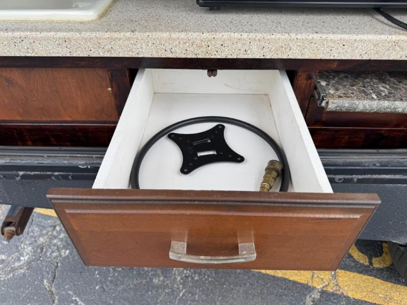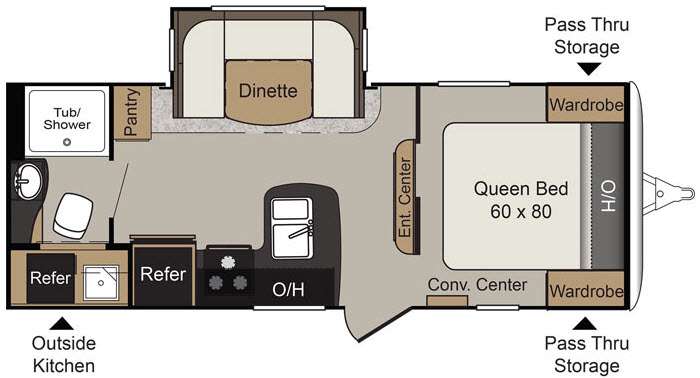 On the outside enjoy more storage with the front pass-through compartment, and an outside kitchen off the rear curbside. This is perfect for those who enjoy cooking and dining outside.