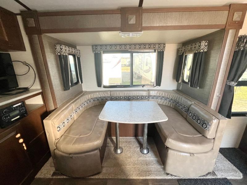A slide out u-shaped dinette provides plenty of seating and extra space inside. And you can easily enjoy the LCD TV located nearby.