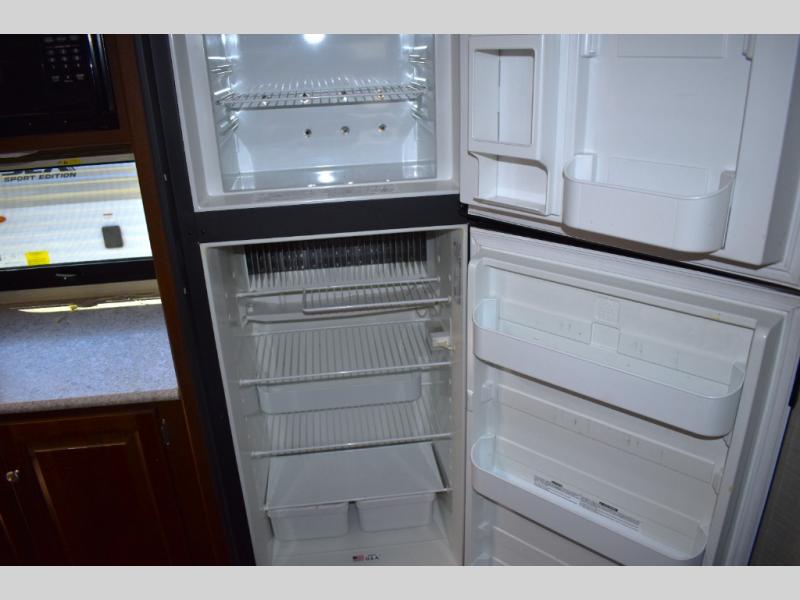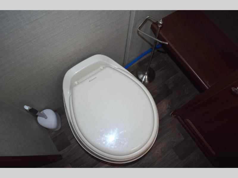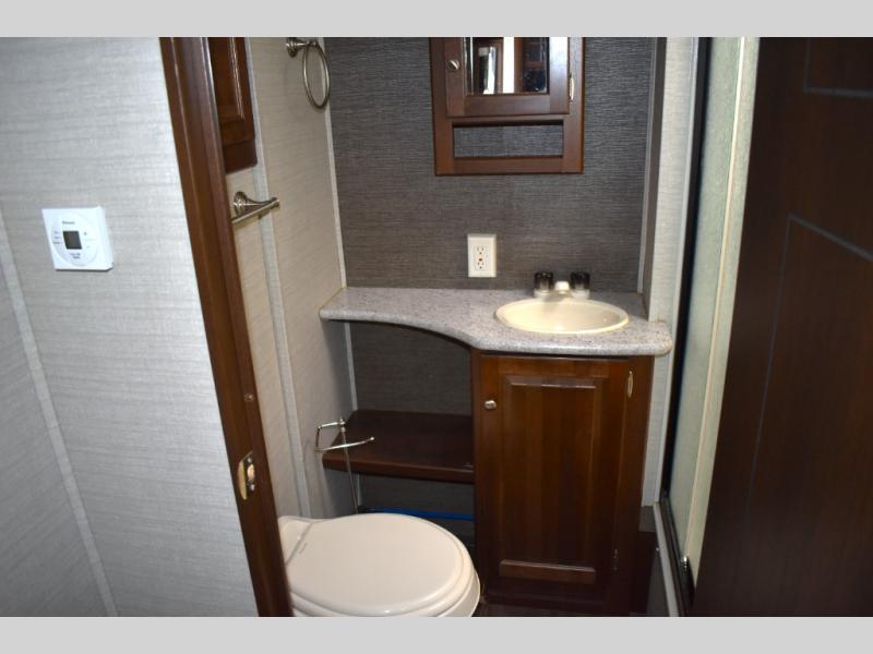 In the rear of this Premier unit you will find a compete bath with 30" x 36" shower including a glass door, toilet and sink, plus a large linen cabinet for toiletries and more.