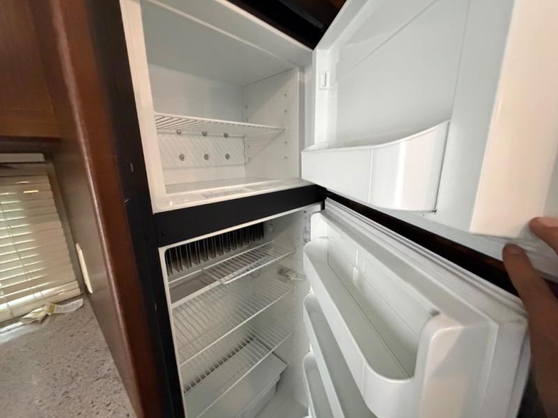 Moving back toward the front of 34BHPR you will pass a complete bath including an angled shower, toilet and sink. Just beyond the bath is a front bedroom featuring a queen bed with wardrobes on both sides, and a convenient laundry chute.