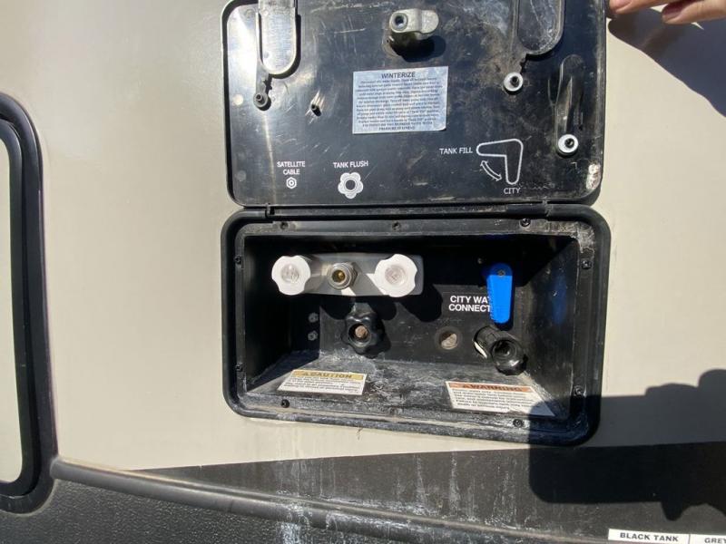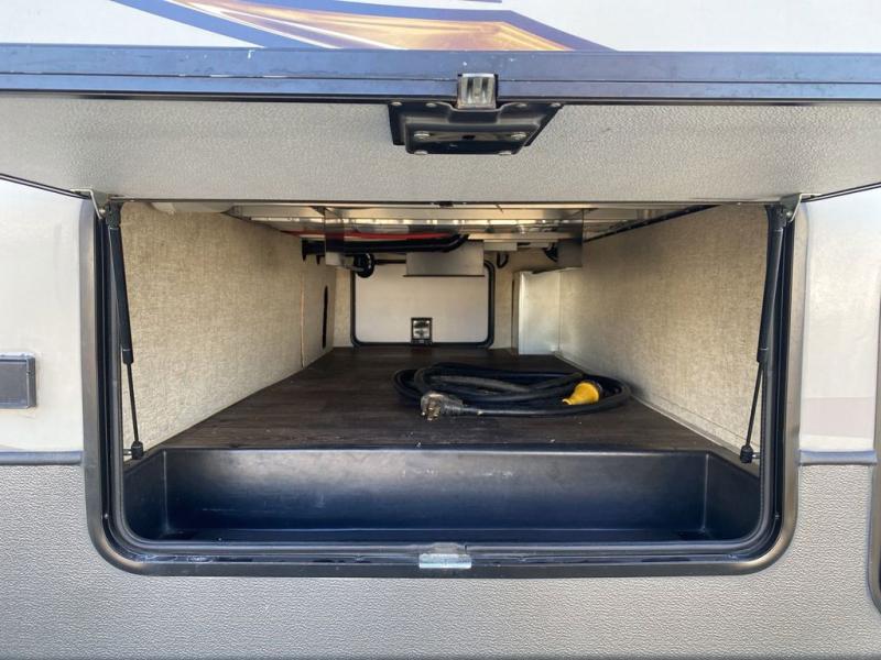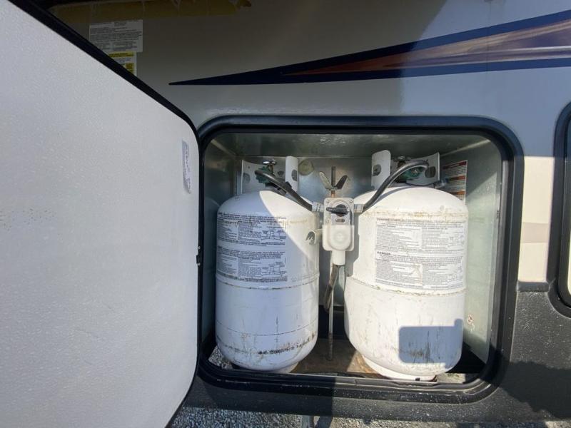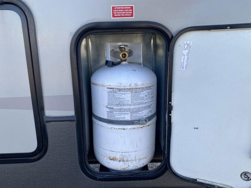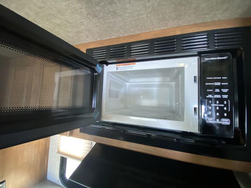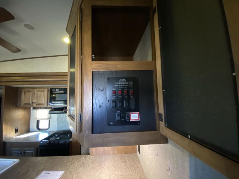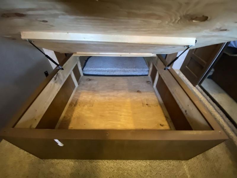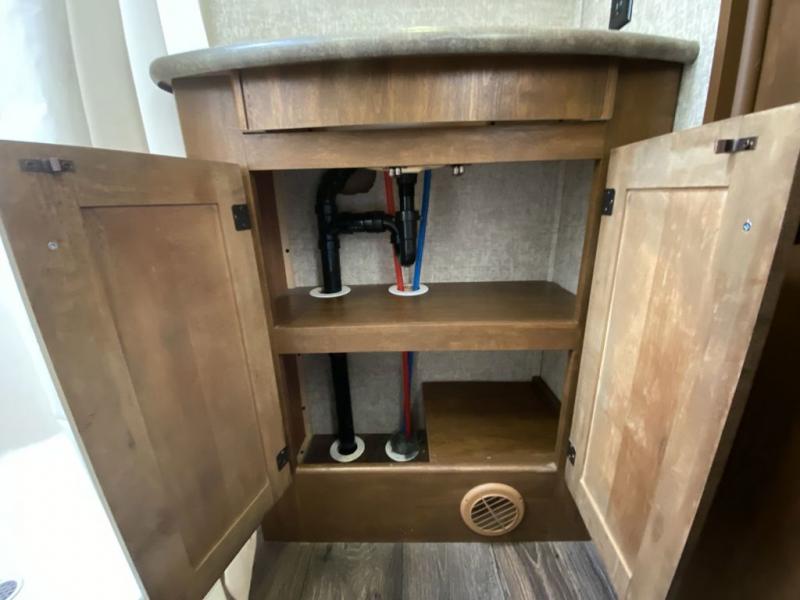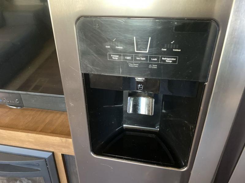 The kitchen provides everything you need to prepare and cook food for your family. There is a large L-shaped counter area with a double sink on the end, overhead cabinets for all of your dishes and things, plus a slide out along the road side that includes a three burner range and 18 cu. ft. residential refrigerator. You will also find more storage space near the entertainment center that is mentioned above, plus so much more!