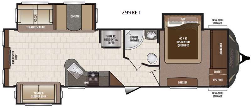 This Sprinter 299RET travel trailer by Keystone RV features a rear living layout and triple slides. With it's wide body design you will find plenty of space inside to enjoy any travel time away from home.