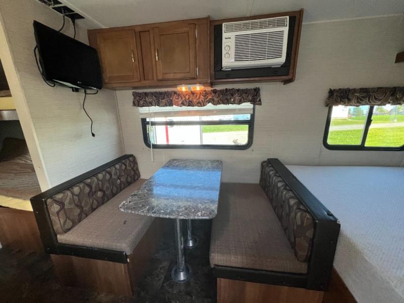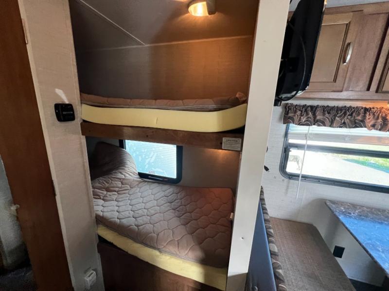 In the rear of this single axle unit find a set of bunks that the kids will certainly love, and a corner bath with tub/shower and toilet, plus so much more!
