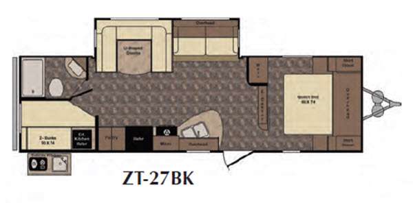 Load up the family, and set out in the Zinger 27BK CrossRoads travel trailer. With a rear bunk house which features double bunks, there is plenty of room for your kids to bring along a friend or two.