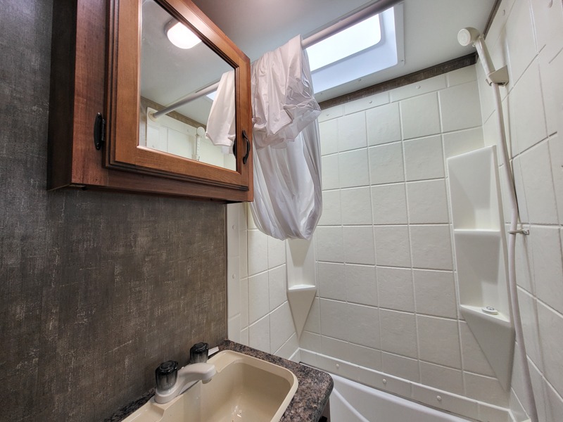 You will find plenty of overhead cabinets as well as an exterior pass thru storage.