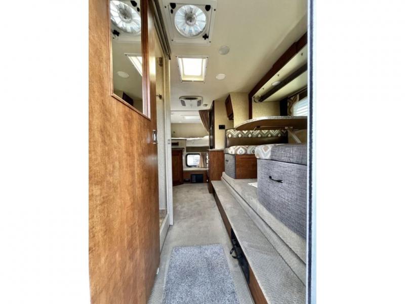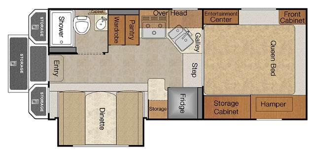 In this Lance truck camper model 1050S for long bed trucks you have a single slide and rear bath.