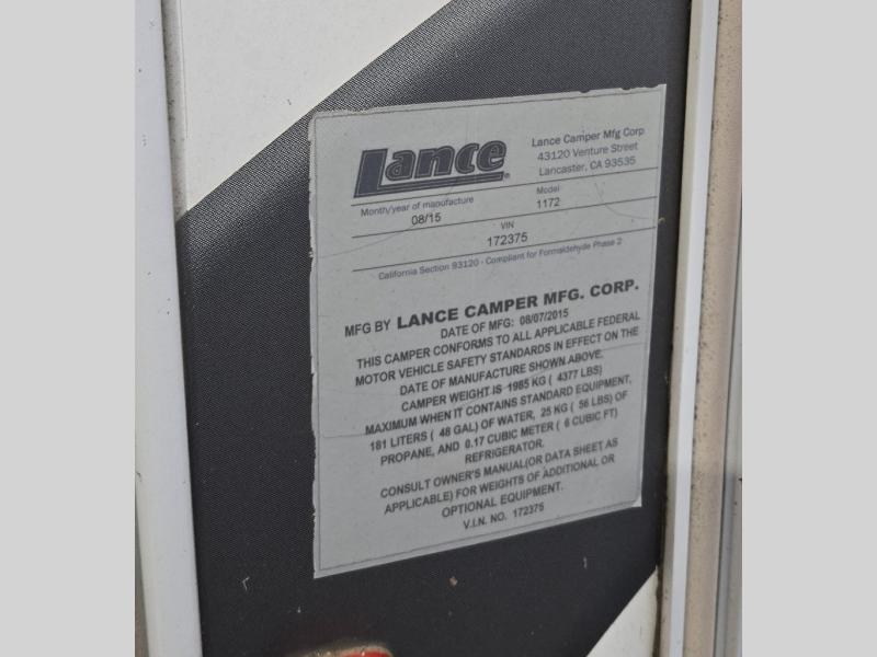 Used 2016 Lance Long Bed 1172 Truck Camper