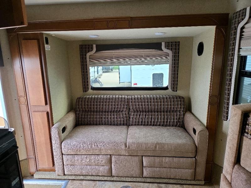 Step inside and notice the convenient sofa and pantry slide along the rear. This rear slide out, plus the dinette and refrigerator slide opposite the door side provide a spacious interior footpath throughout.