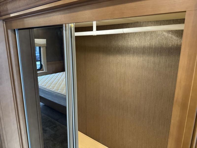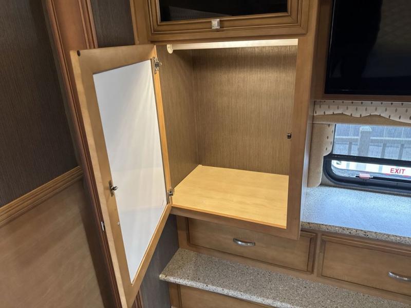 Both the driver and passenger seat swivel around which makes for added seating inside this motor home. With plenty of overhead cabinets throughout this model you can easily bring all of your necessary items from home and store them neatly in the overhead cabinets, plus more!