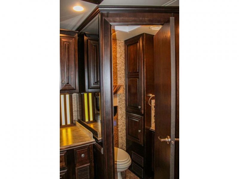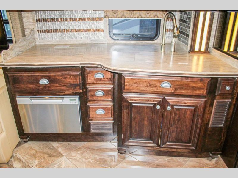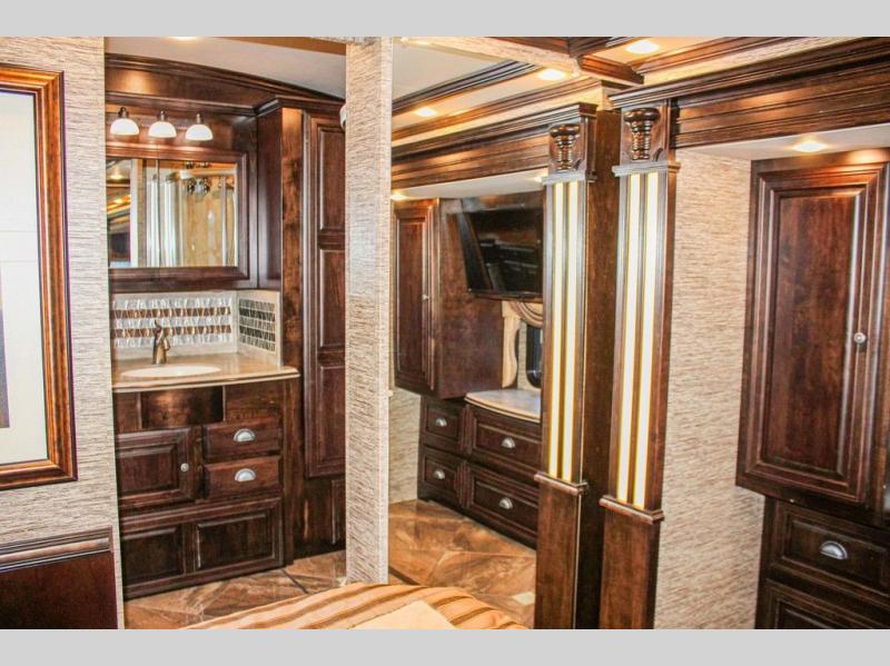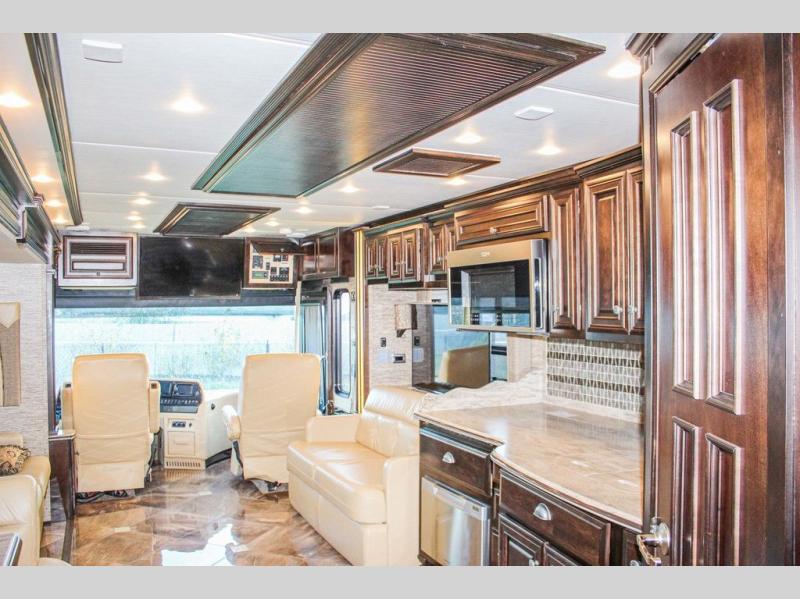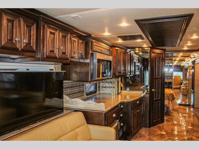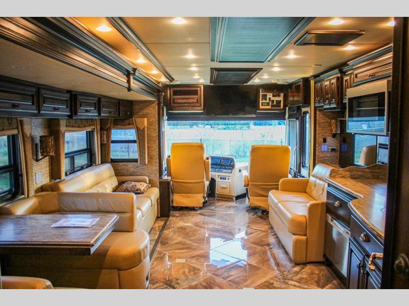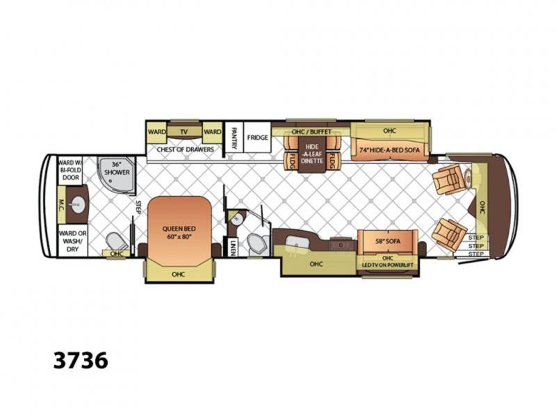 The Dutch Star 3736 motor home by Newmar features triple slides and a bath and a half.