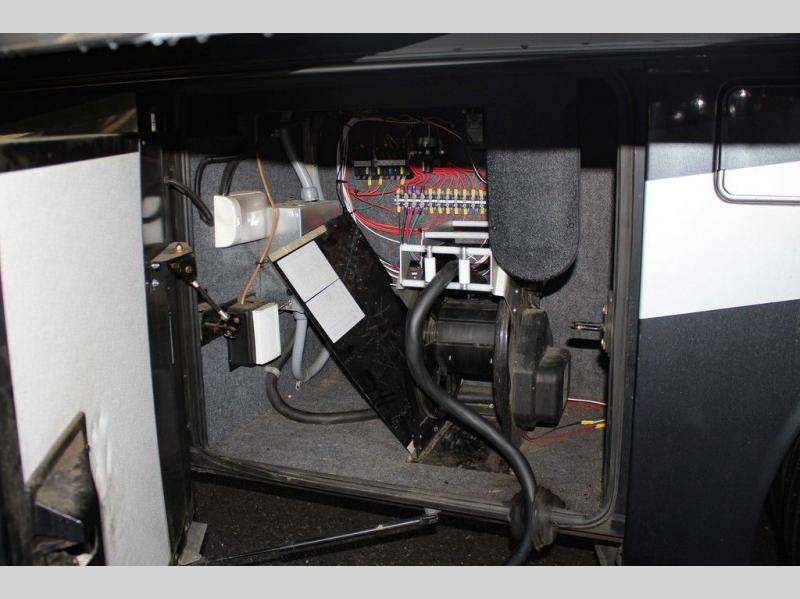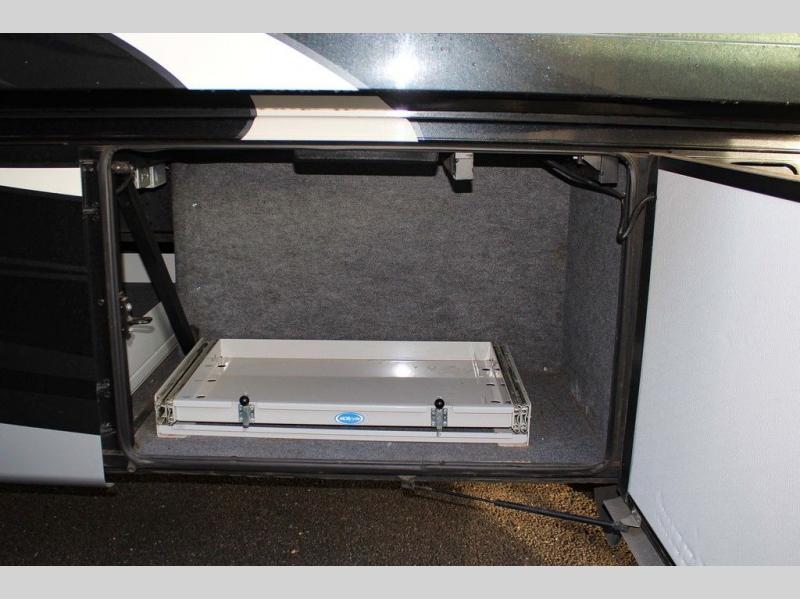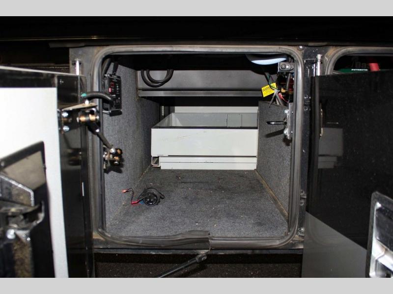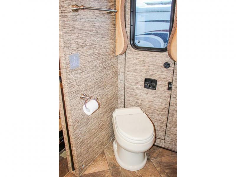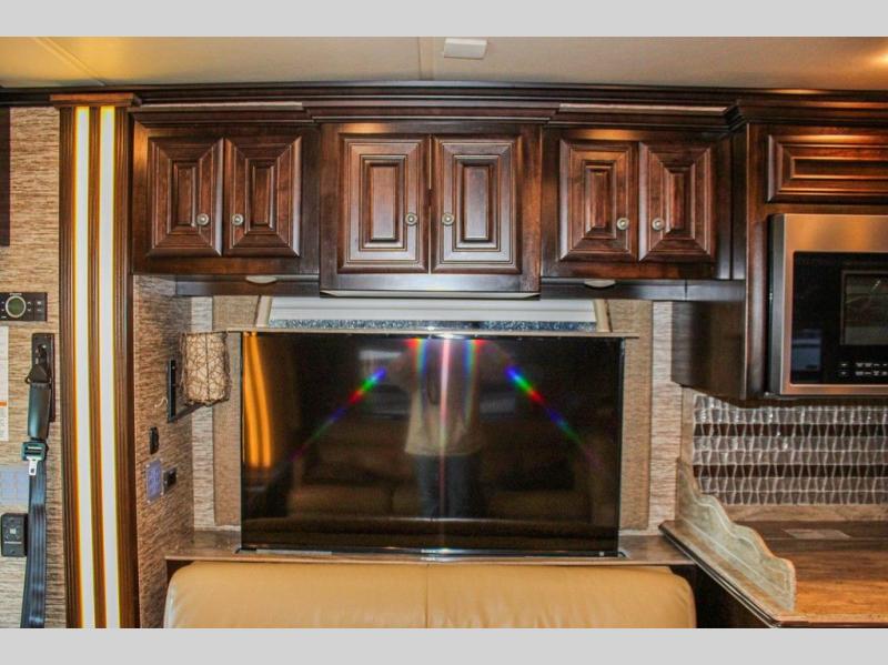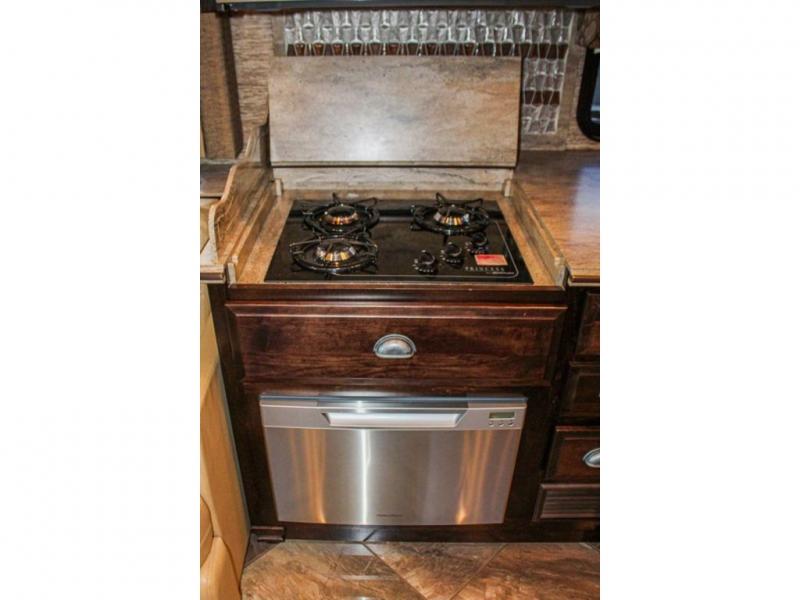 As you enter the motor home you will love all of the space that you immediately notice! To the left of the entry door there is a slide with a sofa, LED TV on a power lift, three burner range, single kitchen sink, and an overhead cabinet for dishes. An added bonus is that the driver and passenger seats swivel around for added seating for guests or friends.